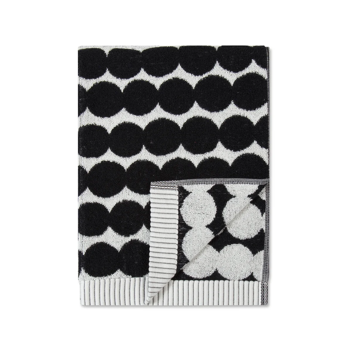 Das Räsymatto Handtuch von Marimekko ziert das gepunktete Räsymatto-Muster in verschiedenen Farben. Das verspielte Motiv wurde von Designerin Maija Louekari entworfen. Schlicht und dennoch markant, eignet sich das weltbekannte Muster hervorragend, um dem Marimekko Handtuch Struktur zu verleihen, ohne das Badezimmer insgesamt zu überladen.