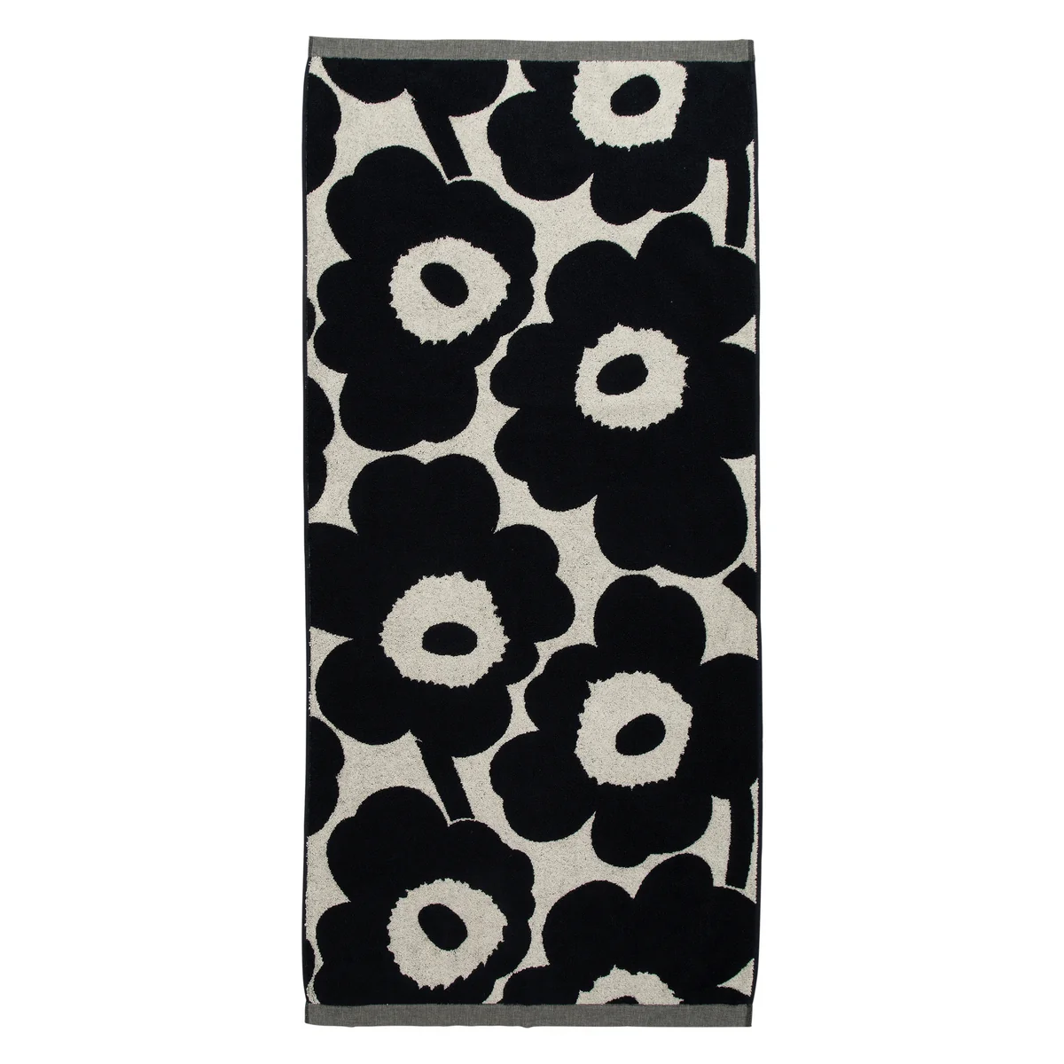 Das Unikko Muster von Maija Isola ist eines der bekanntesten Designs von Marimekko. In unterschiedlichen Farben ziert der florale Print nun auch die Badezimmer-Tücher in unterschiedlichen Größen.