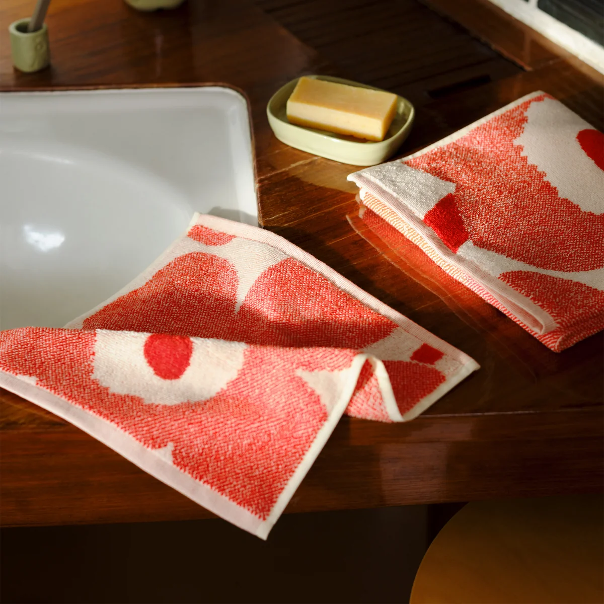 In gewohnter Marimekko-Qualität begeistern die Unikko Solid Mini-Handtücher mit einer weichen Baumwollfaser, die Feuchtigkeit besonders gut aufnimmt.
