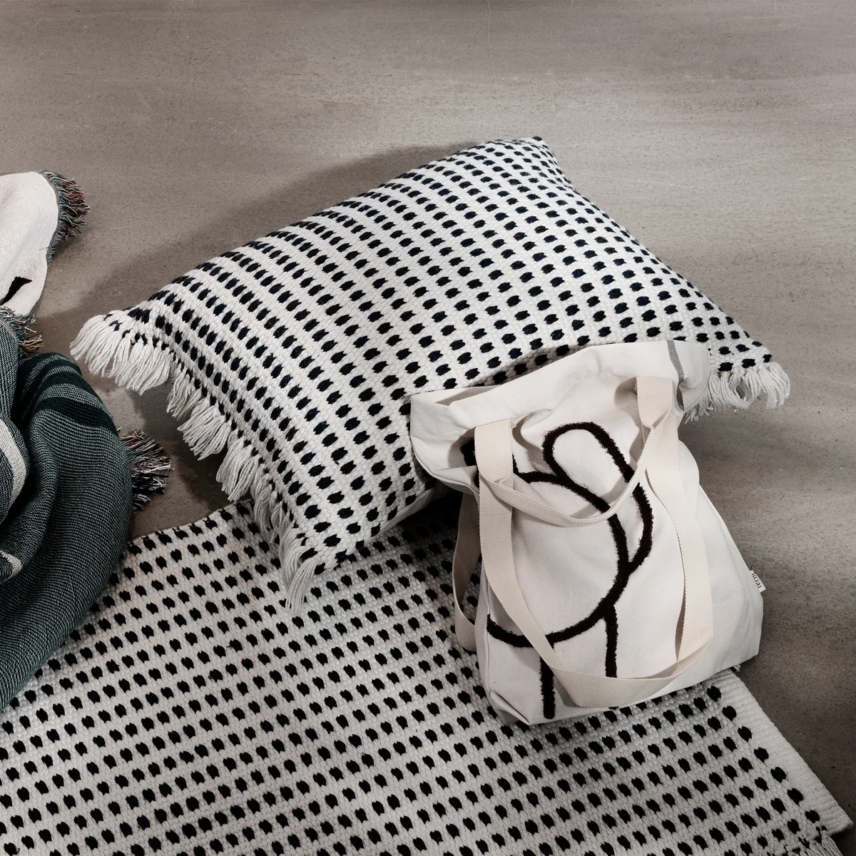 Ferm Living - Way Outdoor Kissen, off-white / blau