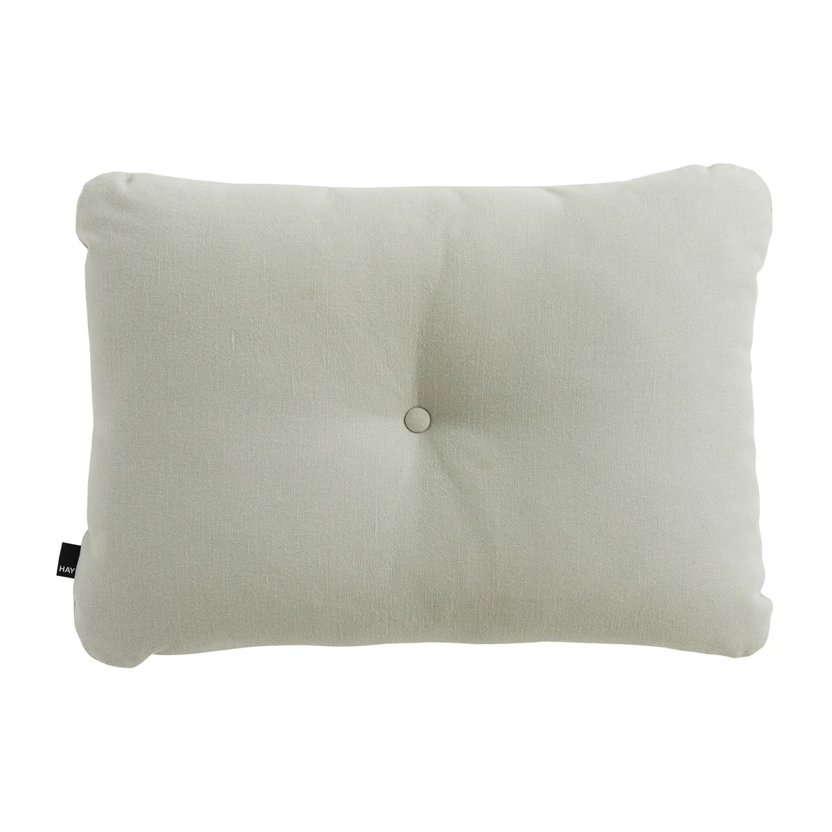 Das Dot Kissen XL von HAY basiert auf dem Klassiker des dänischen Herstellers. Das Kissen ist durch sein rechteckiges Design mit abgerundeten Ecken und dem charakteristischen Knopf ausgezeichnet. Dot wird - je nach Ausführung - aus 60% Baumwolle in Kombination mit Leinen oder Wolle und 40% Polyester gefertigt. Die Kissen sind in unterschiedlichen Farben erhältlich. Sie können wunderbar auf dem Sofa, Sessel oder Bett platziert werden.