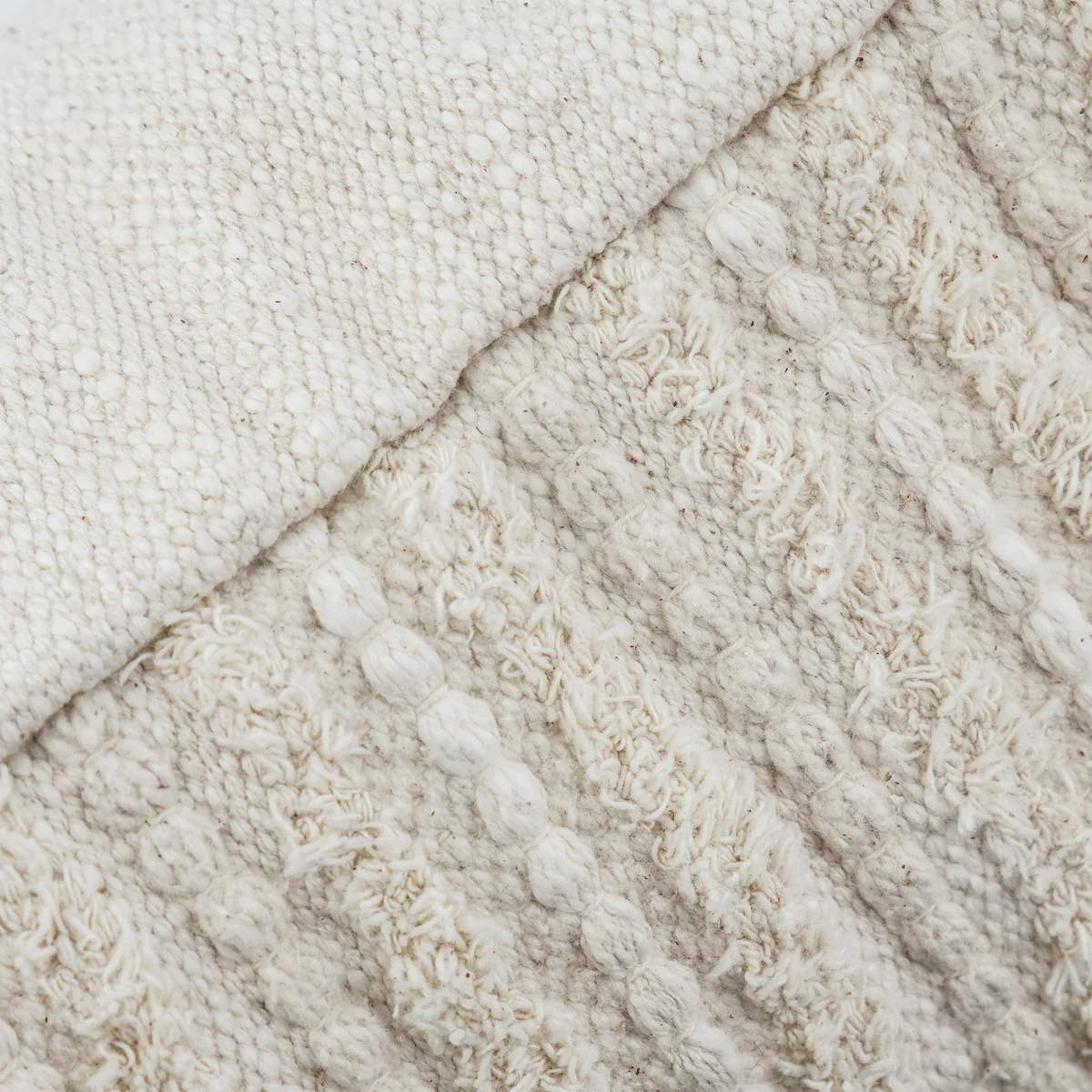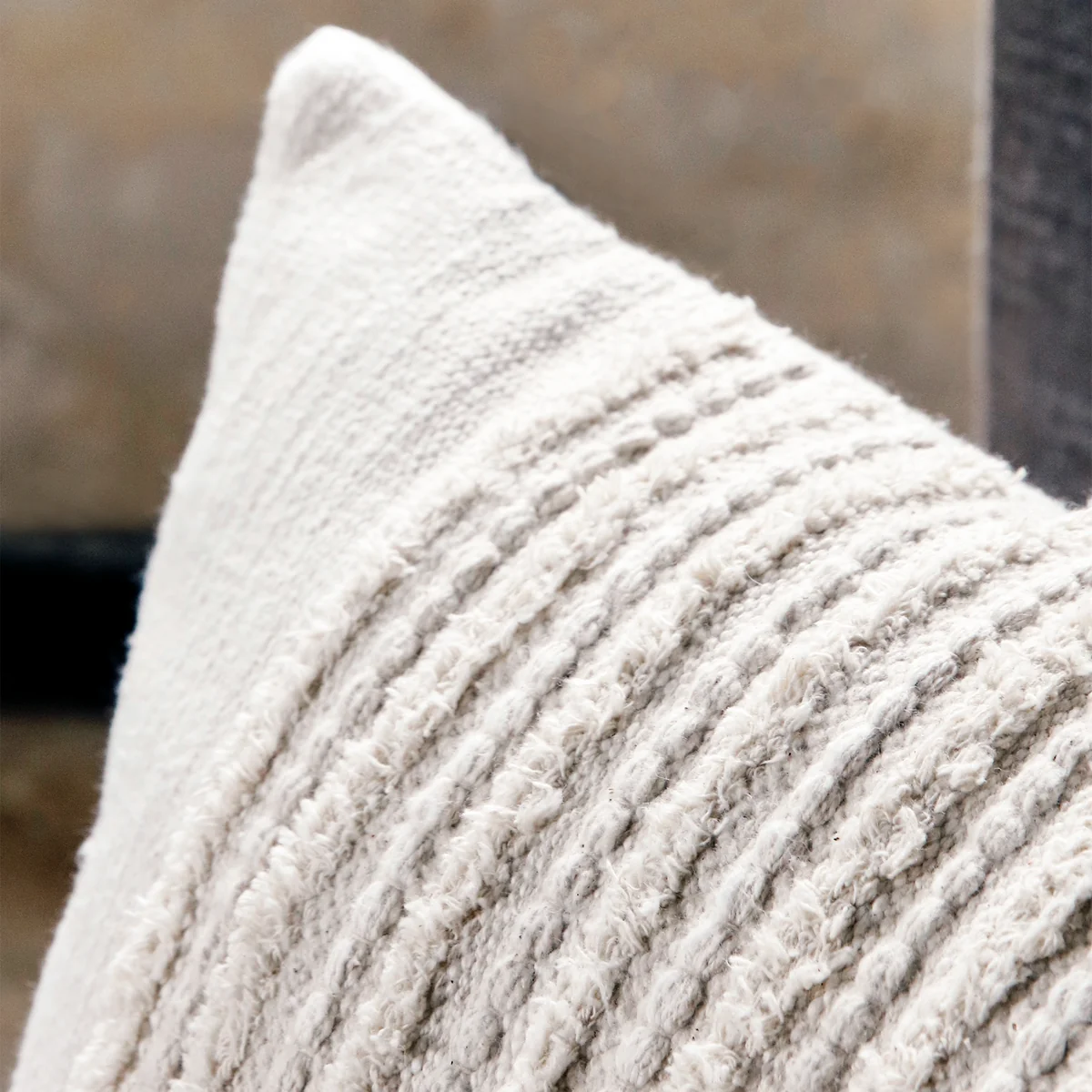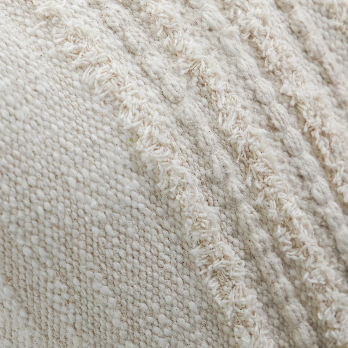 Der Chil Kissenbezug des Herstellers House Doctor ist ein schlichter Blickfang im Boho-Stil. Chil bietet großartigen Komfort und zeitloses Design. Die Streifen in weiß und beige bieten eine ganz besondere Haptik, die jedoch ebenso einen überaus edlen Look darstellen. Das helle, moderne Design kann wunderbar in jeglichen Wohnambienten platziert werden. Chil ist in unterschiedlichen Größen erhältlich und wird aus Baumwolle gefertigt.