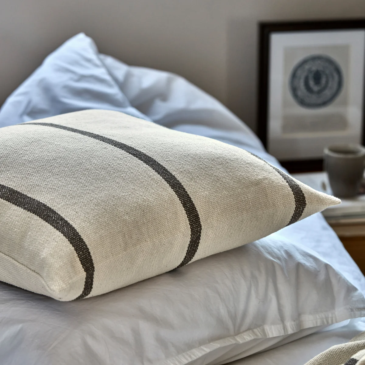 Der Nula Kissenbezug bringt modernes Design und Komfort in den Wohnraum. Gefertigt aus weicher Baumwolle, überzeugt er durch seine schlichte Eleganz mit gewebten dunkelbraunen Streifen. Sein zeitloses Design macht ihn zu einem vielseitigen Accessoire, das sich perfekt mit verschiedenen Einrichtungsstilen kombinieren lässt. Ob auf dem Sofa, Bett oder Sessel – der Nula Kissenbezug setzt elegante Akzente und sorgt für ein gemütliches Ambiente.