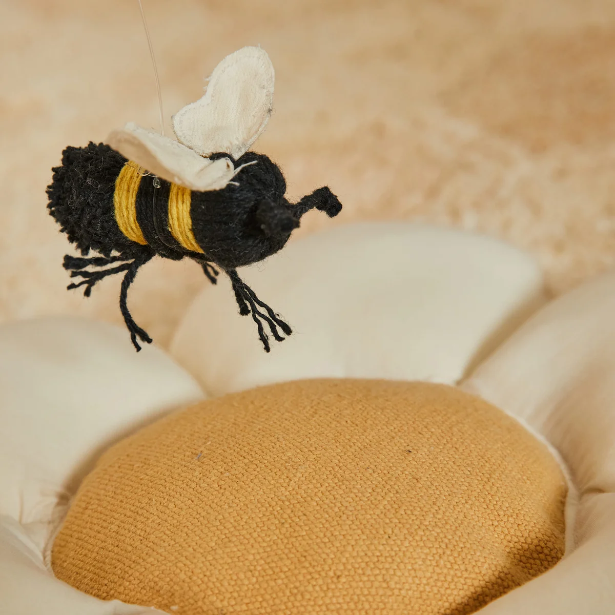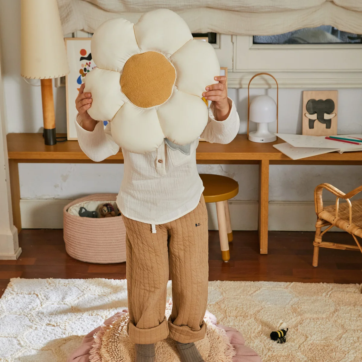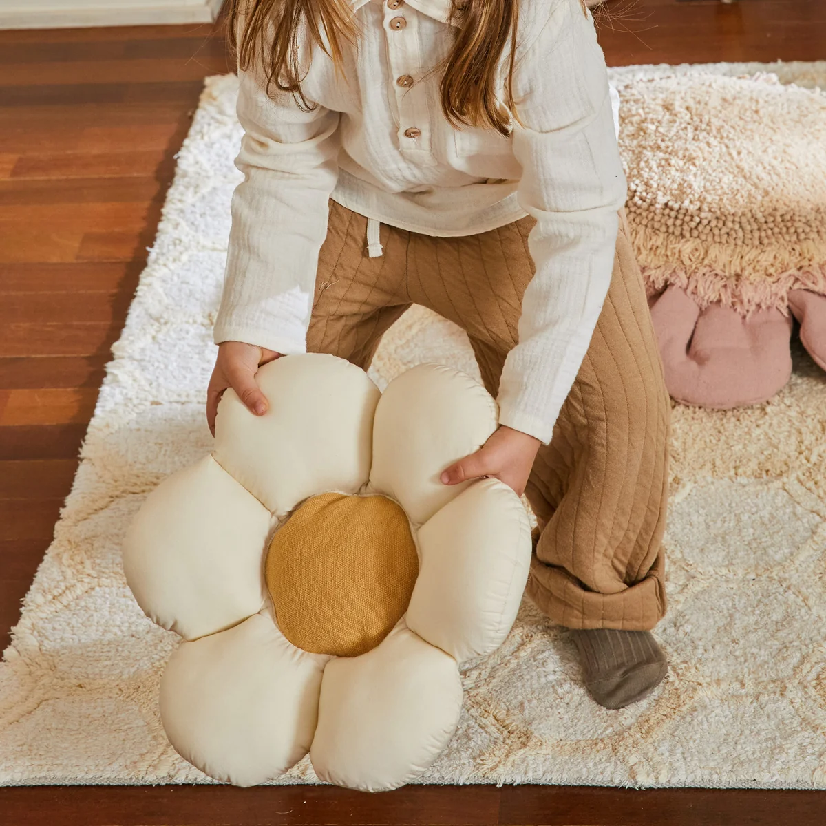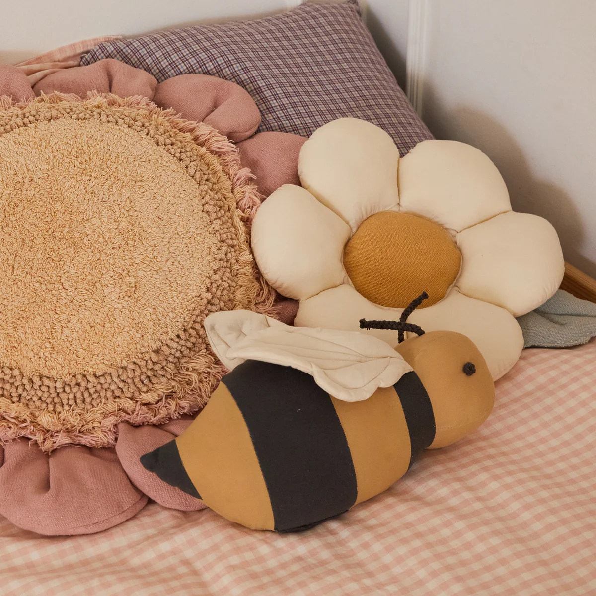 Lorena Canals - Little Daisy Kissen, Ø 35 cm, dark honey / blue sage / natural