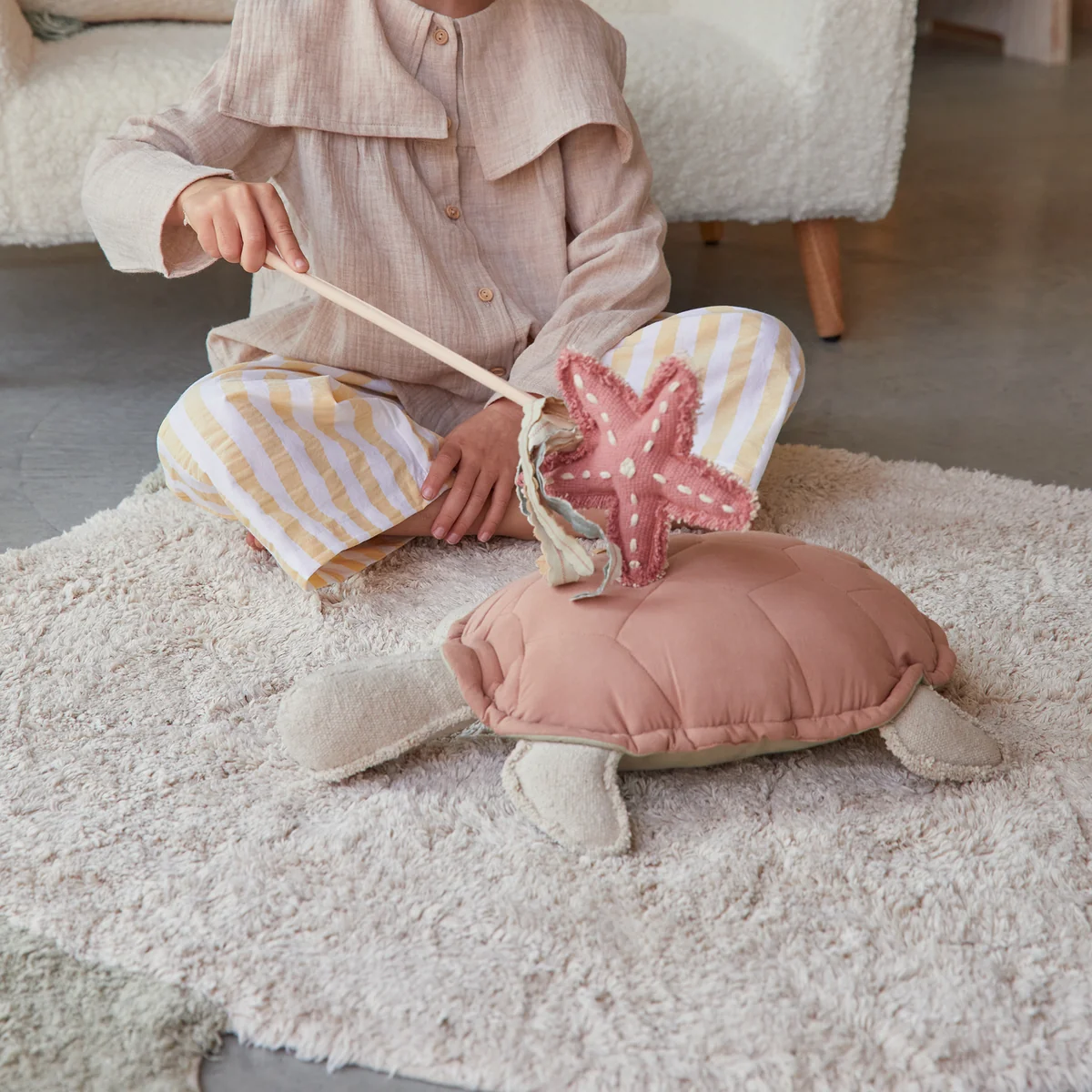 Das Sea Turtle Kissen von Lorena Canals ist der perfekte Begleiter im Kinderzimmer. Mit der weichen und kuscheligen Haptik, ist das Kissen perfekt zum Kuscheln und gleichzeitig der ideale Spielpartner für kleine Unterwasserbesuche. Hergestellt aus weicher Bio-Baumwollpopeline, ist das Kissen nicht nur besonders aufsehenerregend, sondern ergänzt das Dekor auf dem Bett.