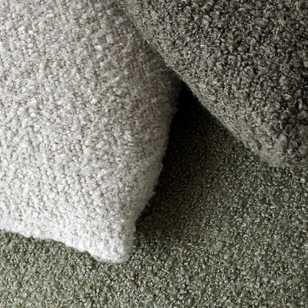 Die Kissen bestehen aus Baumwolle, recyceltem Polyester und Acryl, welche in der klassischen Bouclé-Technik sanft miteinander verwoben werden. So erhält das Kissen Struktur und eine überaus weiche Haptik. Die Soft Bouclé Collect SC28-SC48 Kissen werden mit einem raffiniert versteckten Reißverschluss versehen, welcher den minimalistischen Look unterstützt.