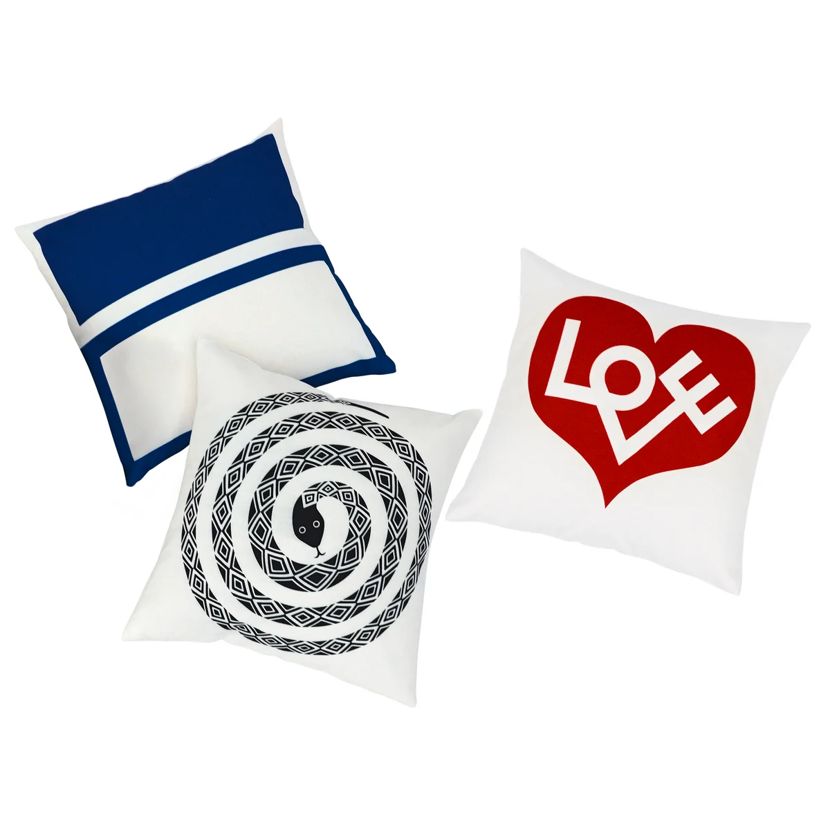 Das Love Kissen besteht aus 100% Baumwolle und erscheint mit einem großen, roten Herz und dem bekannten Love-Schriftzug in dessen Mitte. Am unteren Rand des Kissens befindet sich außerdem ein Schriftzug, die Signatur Alexander Girards.