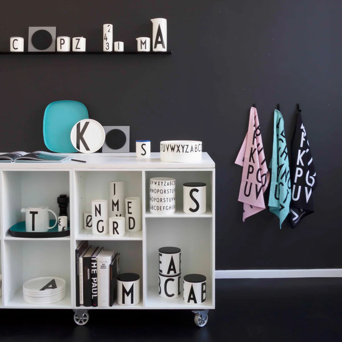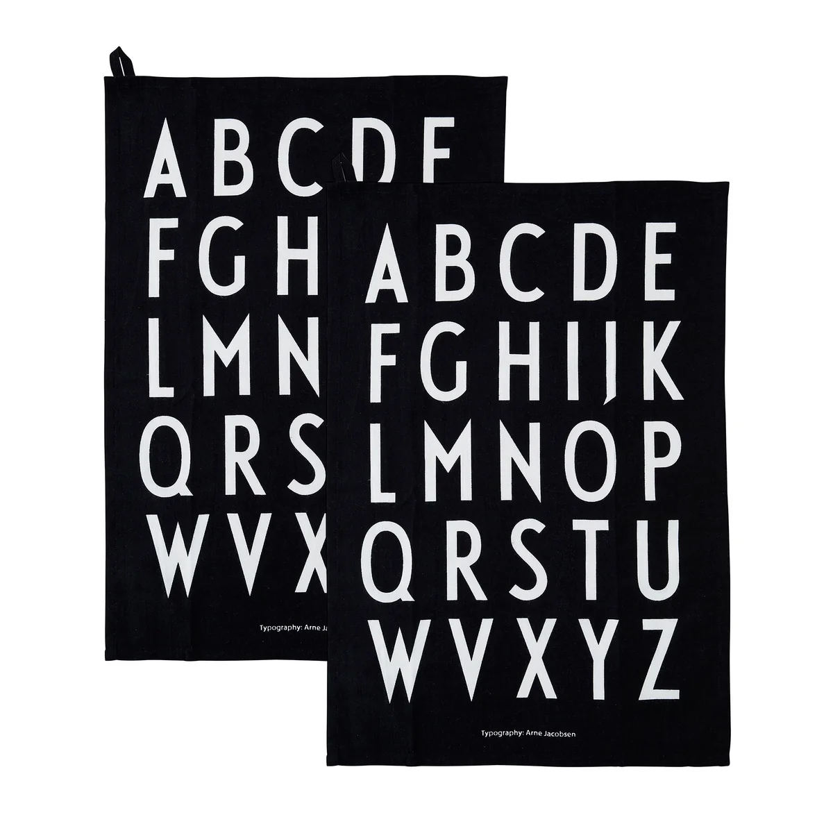 Die ABC Geschirrhandtücher von Design Letters ziert das Alphabet in einer Typografie von Arne Jacobsen. In klassisch minimalistischem Design reiht sich ein Buchstabe der zeitlosen Typografie neben den anderen. Einmal an der praktischen Schlaufe aufgehängt, wird das Design Letters Geschirrhandtuch zum dekorativen Blickfang in der Küche.