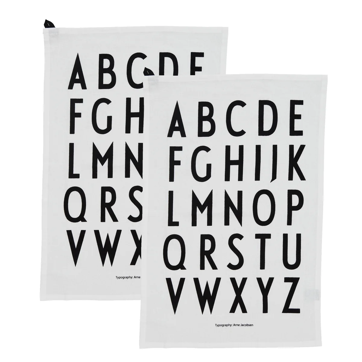 Die ABC Geschirrhandtücher von Design Letters ziert das Alphabet in einer Typografie von Arne Jacobsen. In klassisch minimalistischem Design reiht sich ein Buchstabe der zeitlosen Typografie neben den anderen. Einmal an der praktischen Schlaufe aufgehängt, wird das Design Letters Geschirrhandtuch zum dekorativen Blickfang in der Küche.