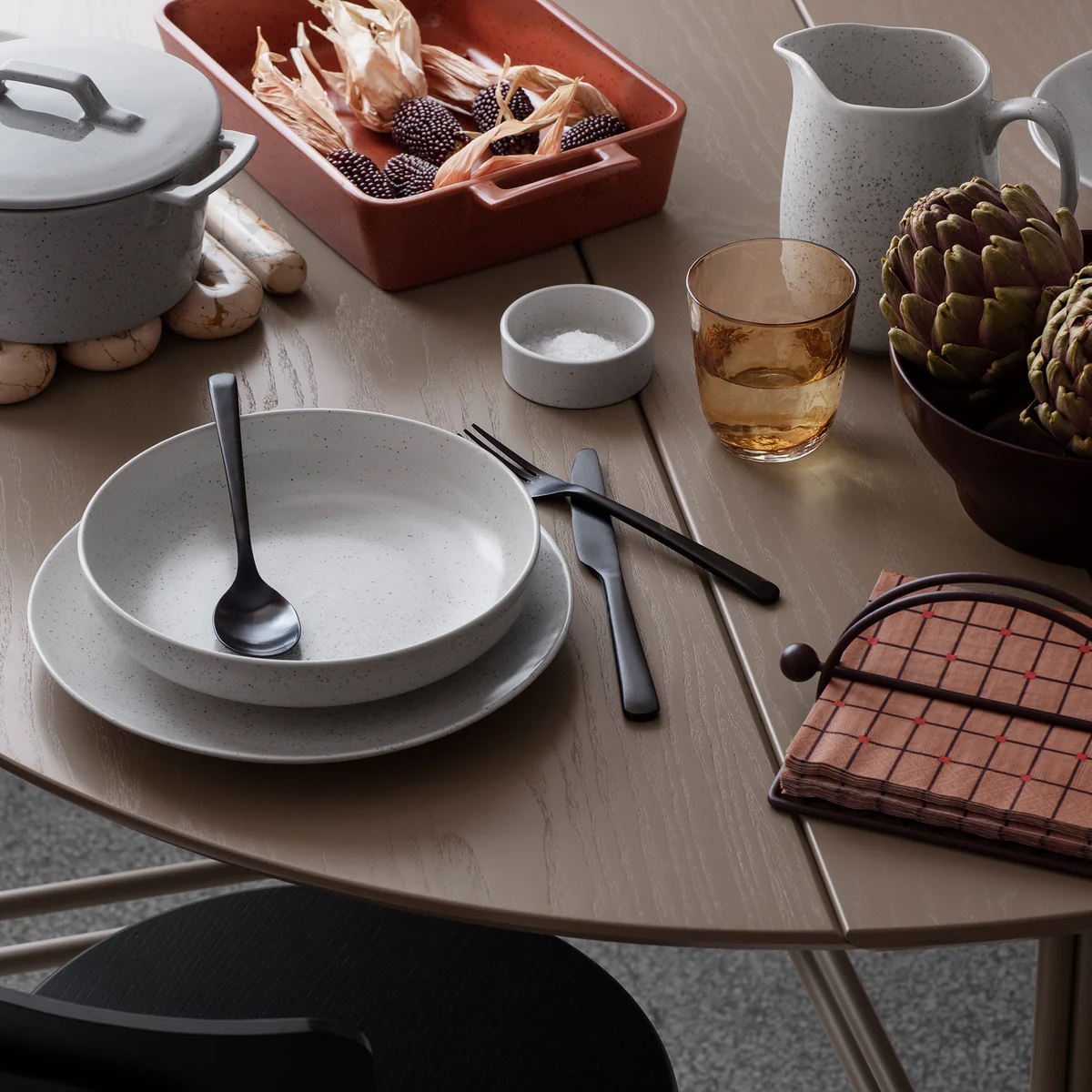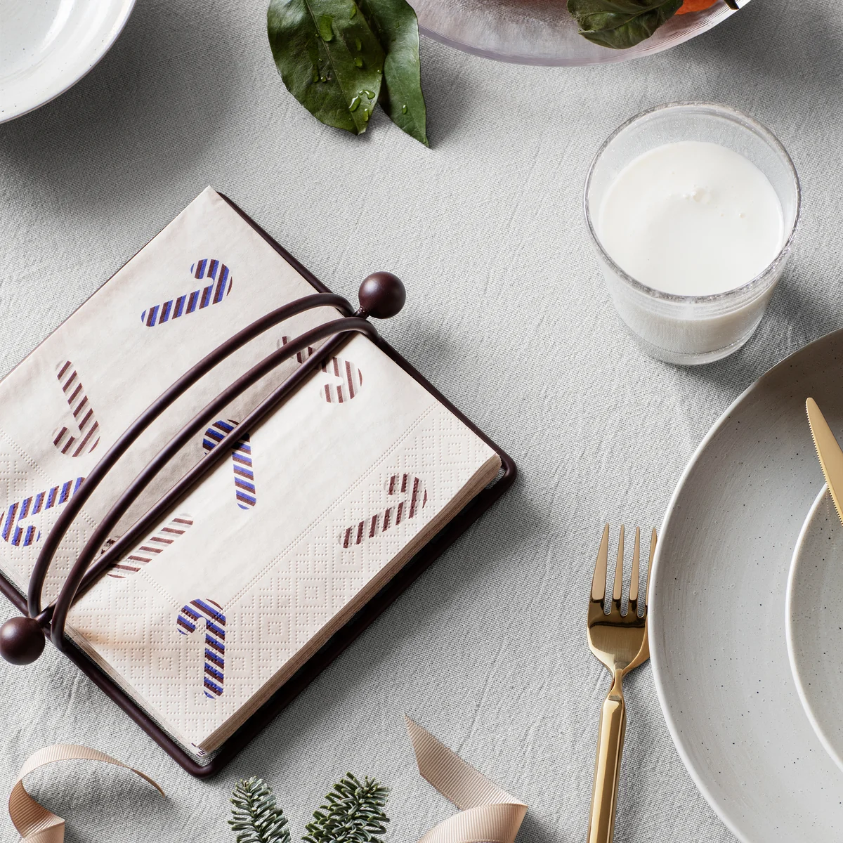 Der Viet Serviettenhalter von Broste Copenhagen ist ein lebhaftes Zusammenspiel aus geometrischen Formen wie geraden Linien, gebogenen Linien und Kugeln. Der abgerundete Griff macht es leichter, den Serviettenhalter umzustellen und die Stange im Griff beschwert die Servietten. So lässt es sich auch an einem windigen Tag toll auf der Terrasse oder dem Balkon essen.