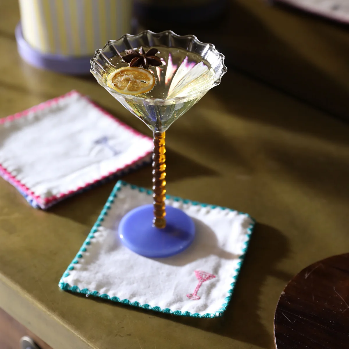 Die Zigzag Serviette von &klevering wird aus 100 % Baumwolle gefertigt und besticht durch farbenfrohe Stickereien, die Ihrer Tischdekoration einen charmanten Akzent verleihen. Kombinieren Sie diese Serviette mit den eleganten Coupe Perle Cocktailgläsern, um ein rundum stilvolles Cocktailarrangement zu kreieren. Perfekt, um Ihr Esserlebnis zu vervollständigen und Ihren Gästen eine besondere Atmosphäre zu bieten.