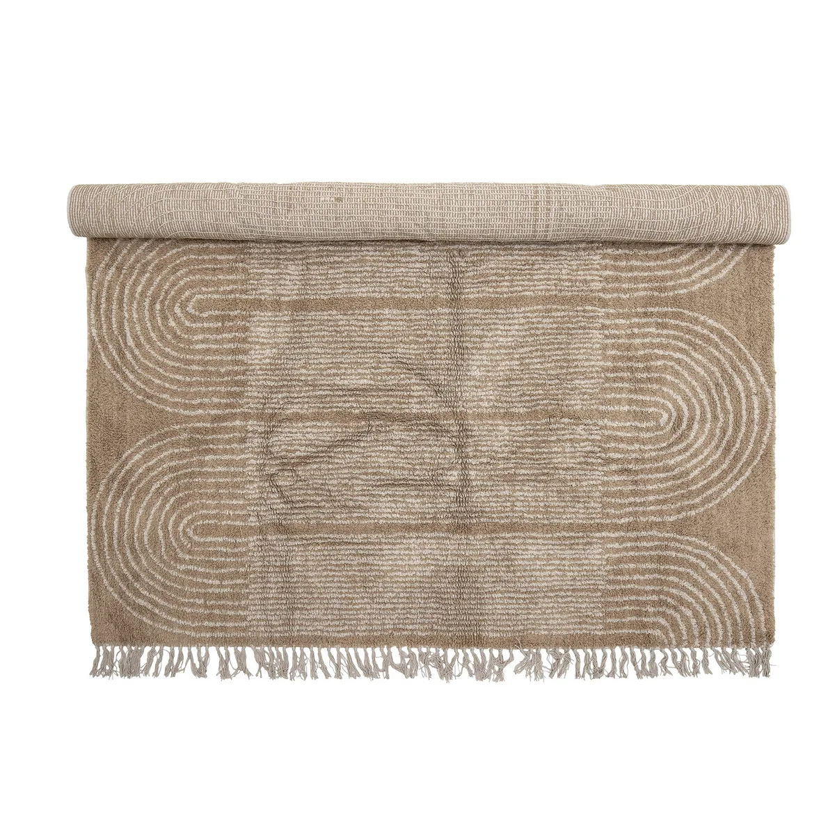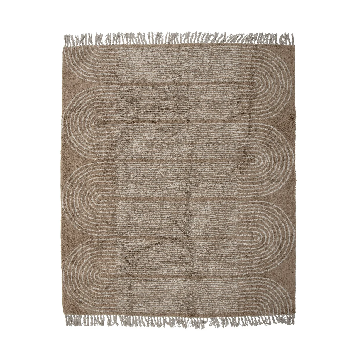 Der Teppich Zeynep von Bloomingville ist aus Baumwolle gewebt und hat ein schönes Flormuster und Fransen an den Enden. Die warme Farbe des Teppichs verleiht jedem Zuhause eine gemütliche Atmosphäre.