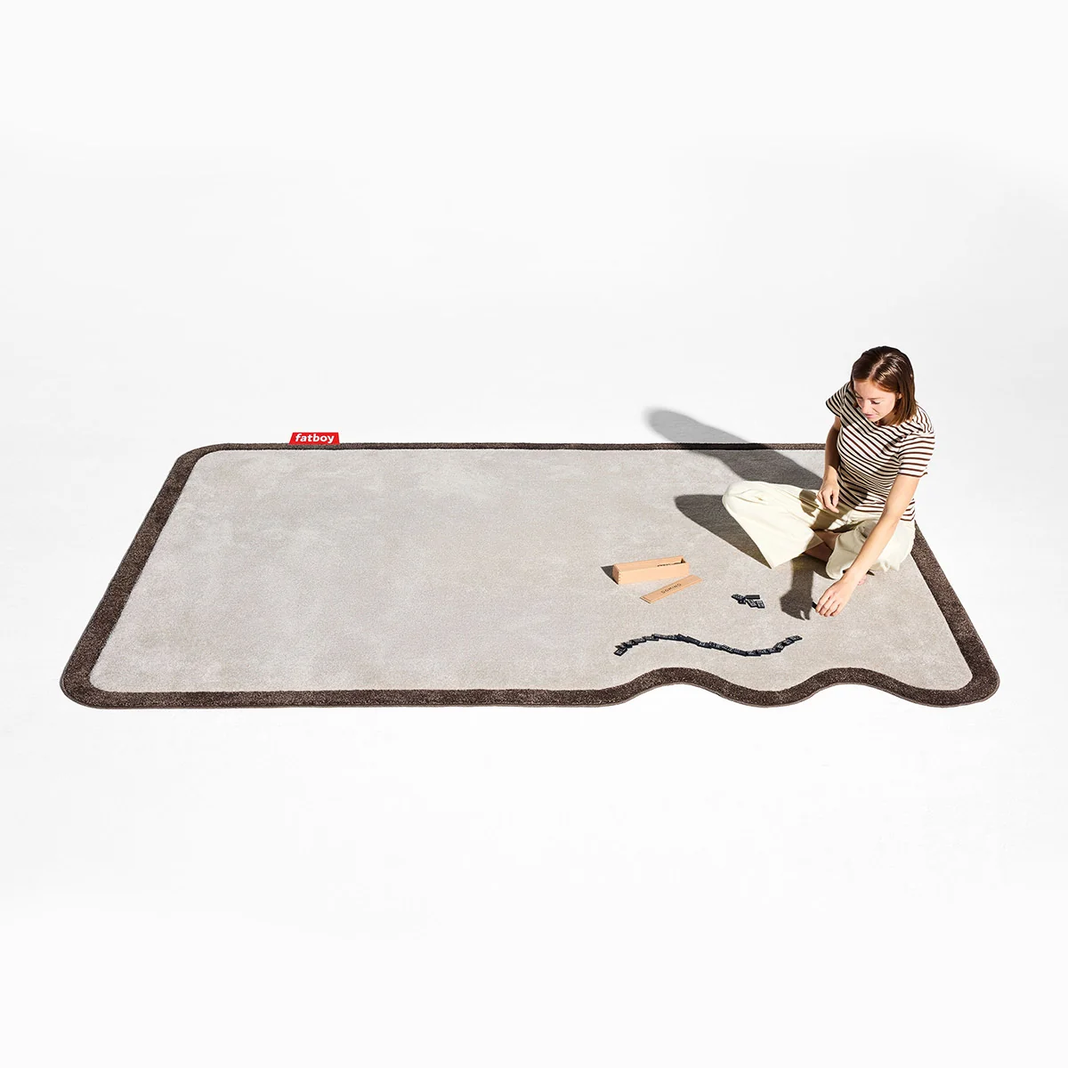 Der Not Straight Teppich ist alles andere als gewöhnlich. Mit seinen abgerundeten Ecken und der markanten, wellenförmigen Kante bringt er einen spielerischen Twist in jedes Interieur. Die cremefarbene Basis mit kontrastierendem braunen Rand sorgt für ein ruhiges, zugleich ausdrucksstarkes Erscheinungsbild, das perfekt zu Fatboys Indoor-Kollektion passt. Ein Teppich, der Komfort, Stil und Persönlichkeit vereint – für alle, die Design mit Augenzwinkern lieben.