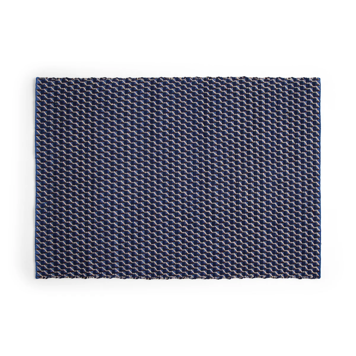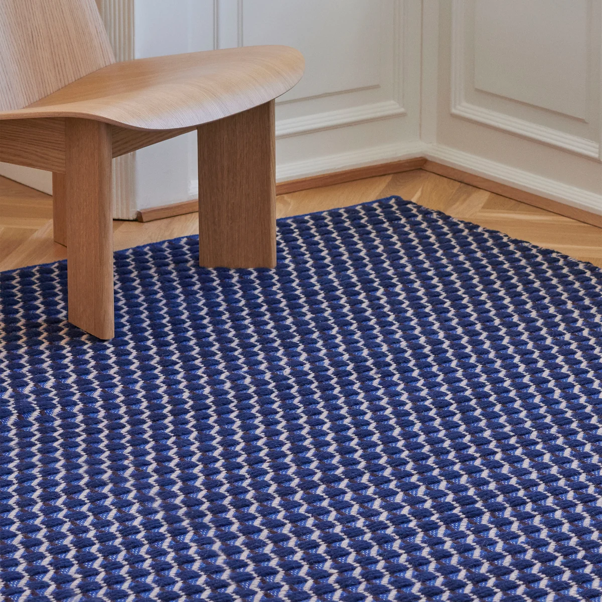 Der Channel Teppich von Clara von Zweigbergk für HAY begeistert mit seinem strukturellen und diagonalen Muster. Das Verwenden mehrfarbiger Garne lässt einen grafischen, mehrdimensionalen Effekt entstehen. Channel wird in Indien in einer Materialmischung aus neuseeländischer Wolle und Baumwolle mit OEKO-TEX® STANDARD 100 handgewebt.