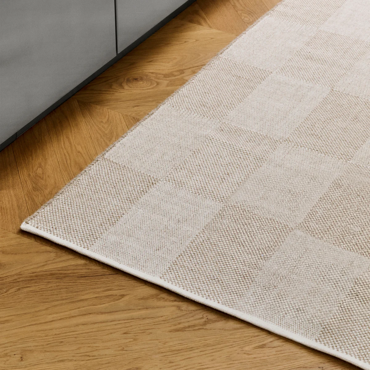 Die natürliche Wärme des Check Teppichs und die Lebendigkeit des Designs werten jedes umgebende Wohninterieur auf. Der zeitlose Teppich ist in unterschiedlichen Größen und Farben erhältlich.