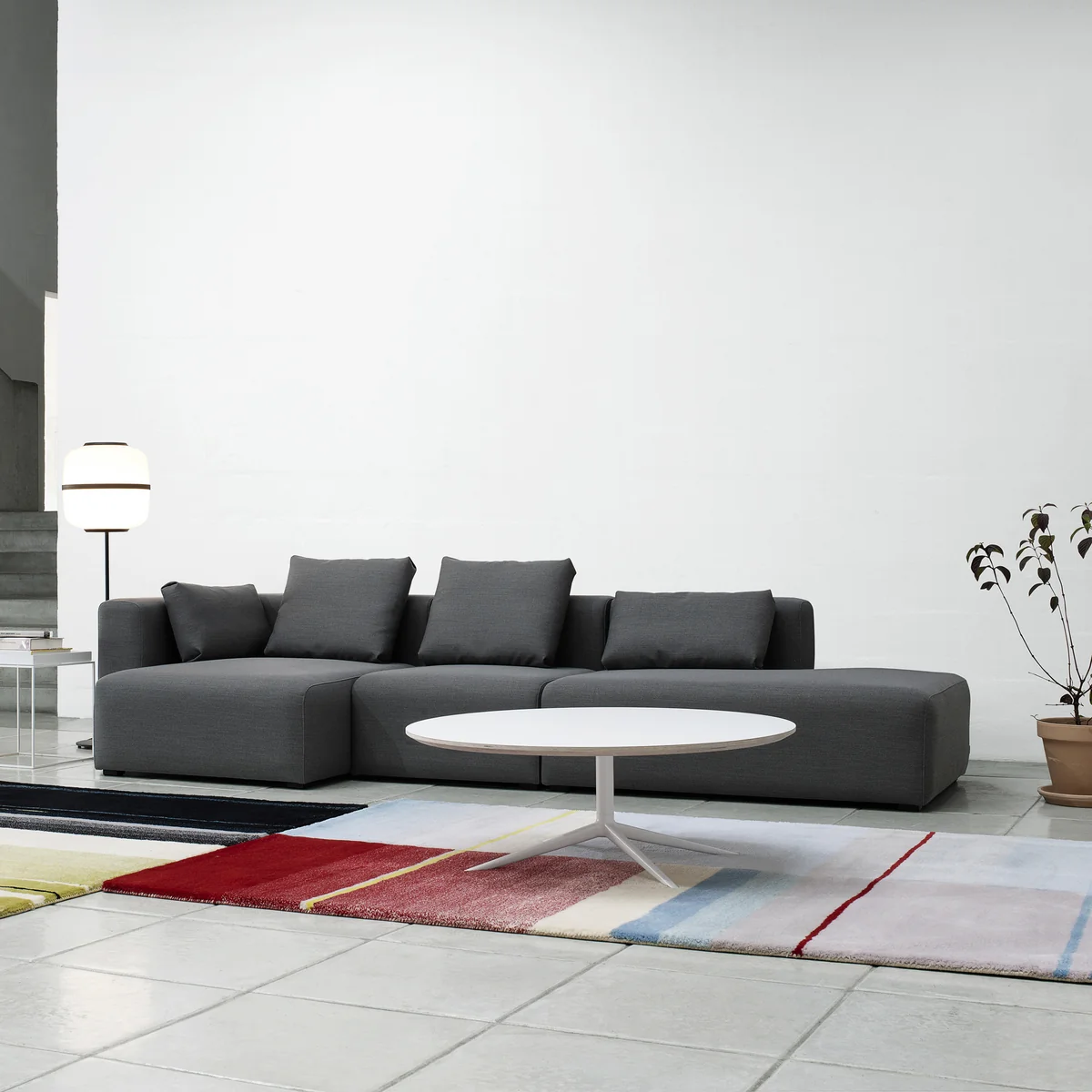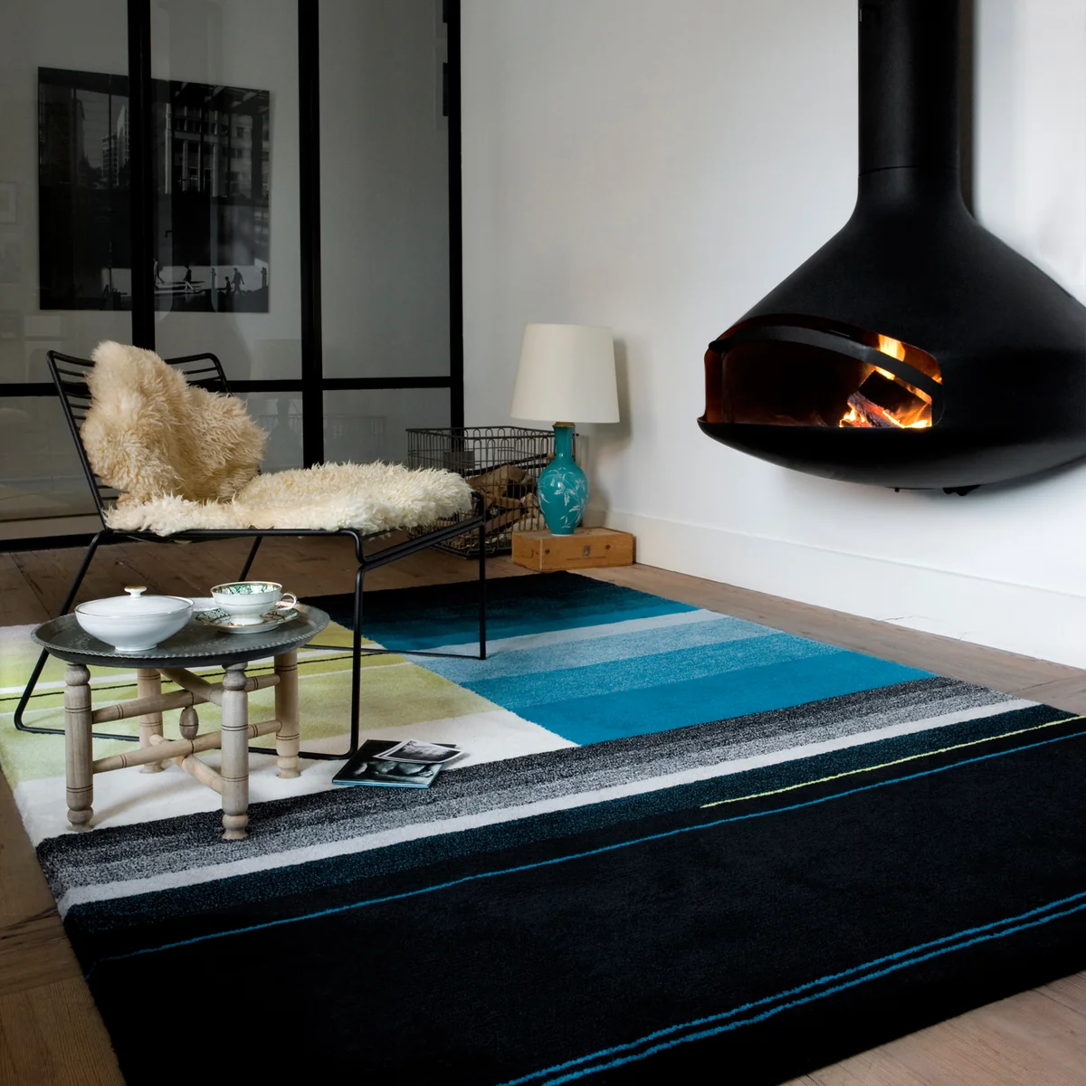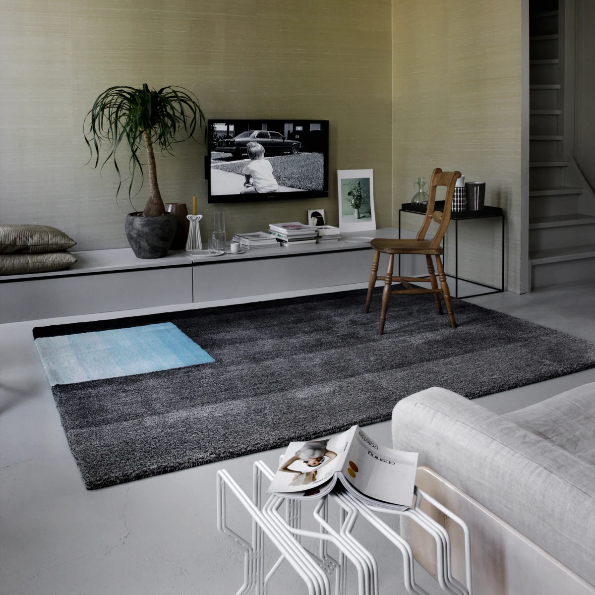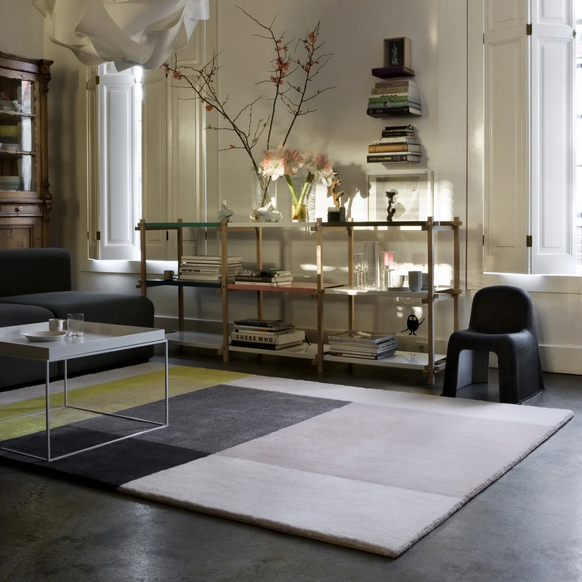 Mit Hilfe von Farbverläufen und grafischen Mustern haben Scholten & Baijings Entwürfe mit optischer Transparenz geschaffen. Jeder Colour Carpet besitzt klar abgegrenzte farbige Flächen, die mit weiteren Abstufungen und geometrischen Linien durchzogen sind. Die Farben werden je nach Variante des Teppichs verschieden miteinander kombiniert. Insgesamt bietet HAY sechs verschiedene Colour Carpets an.