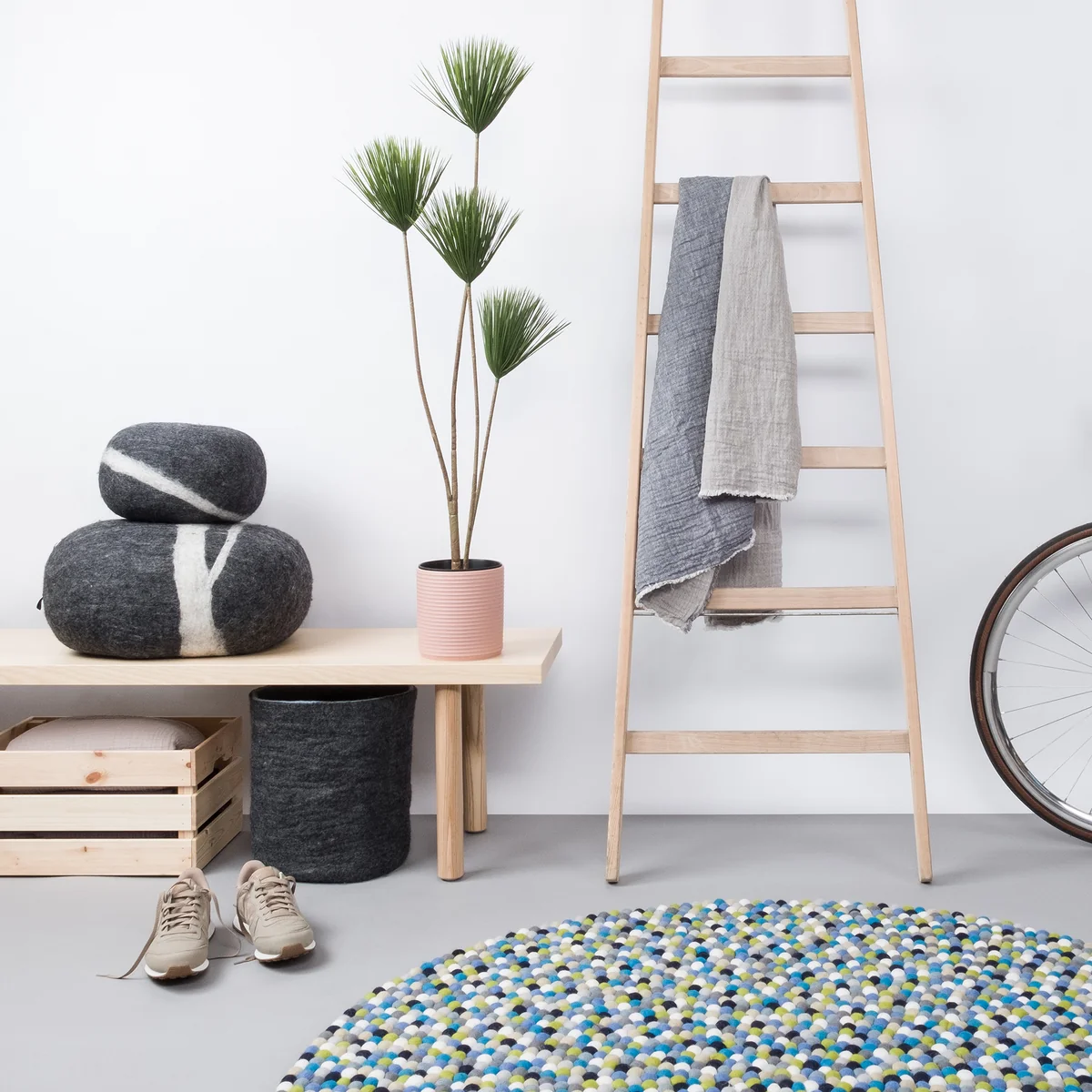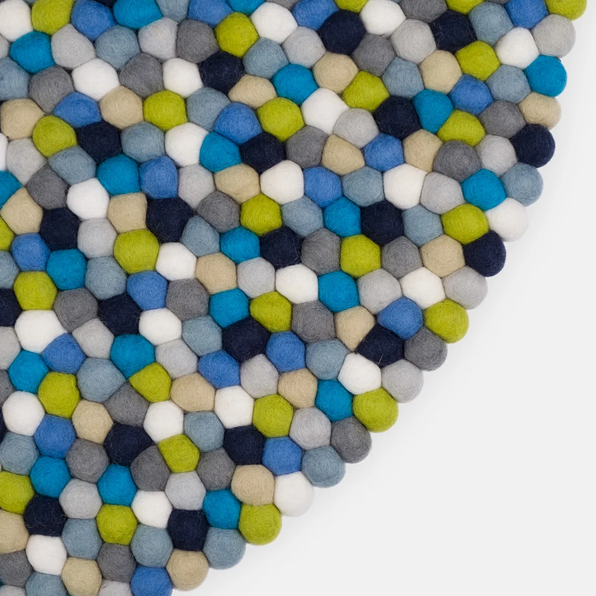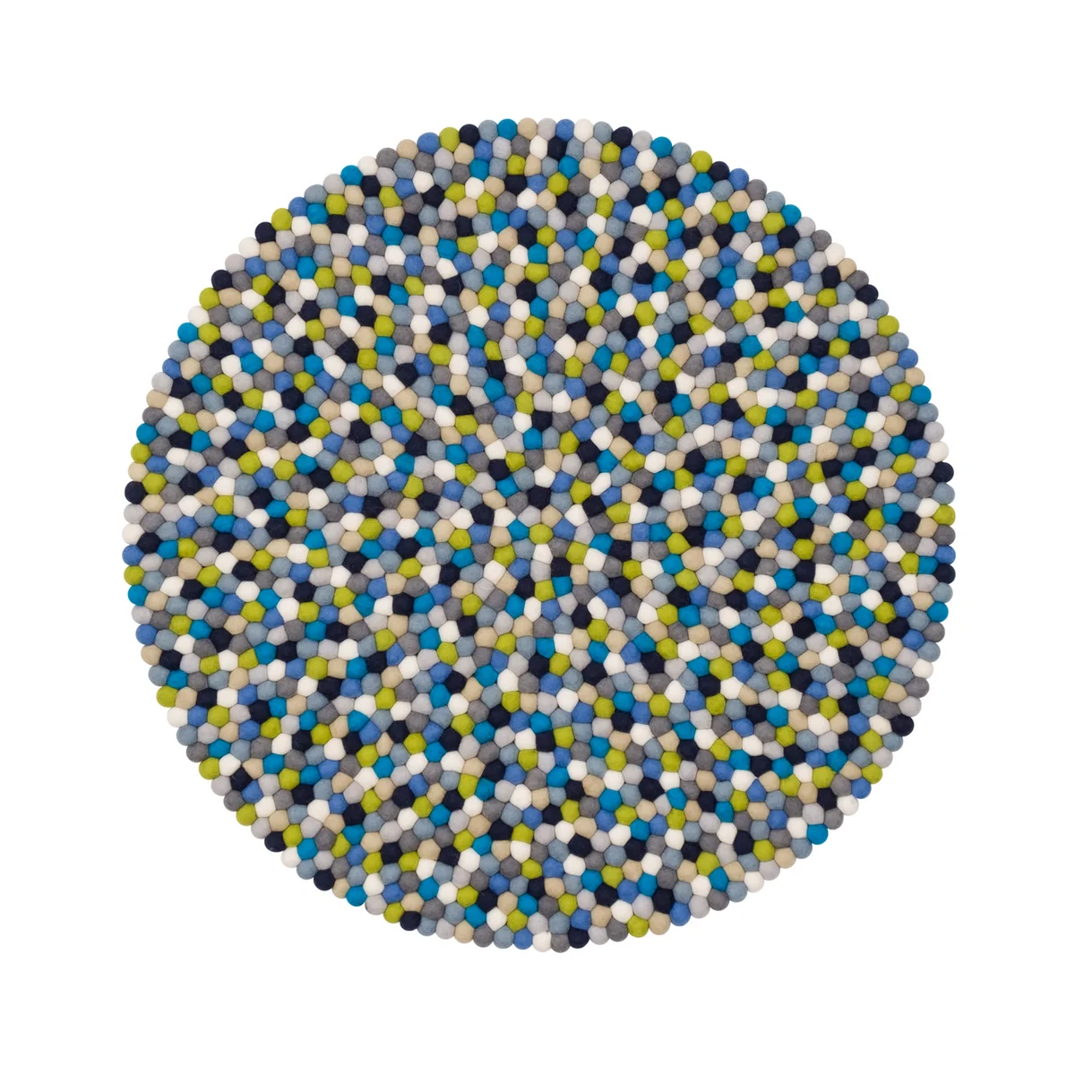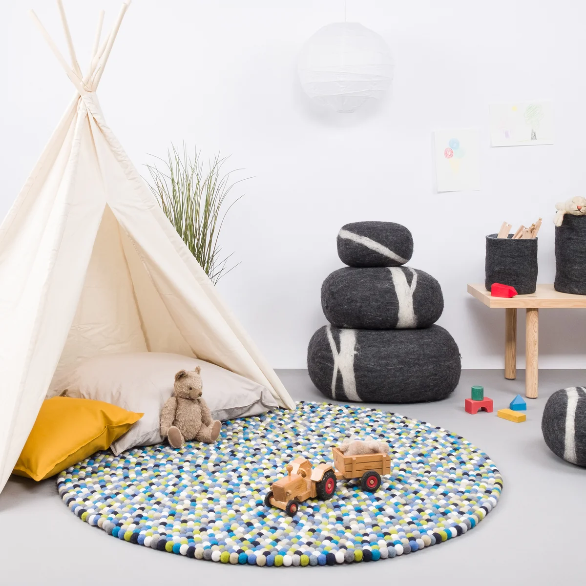 In verschiedenen Farben ist der runde Filzkugel-Teppich als runde, rechteckige und quadratische Version erhältlich.