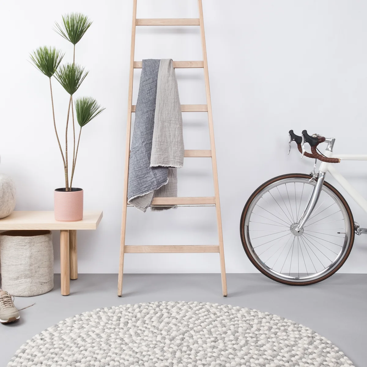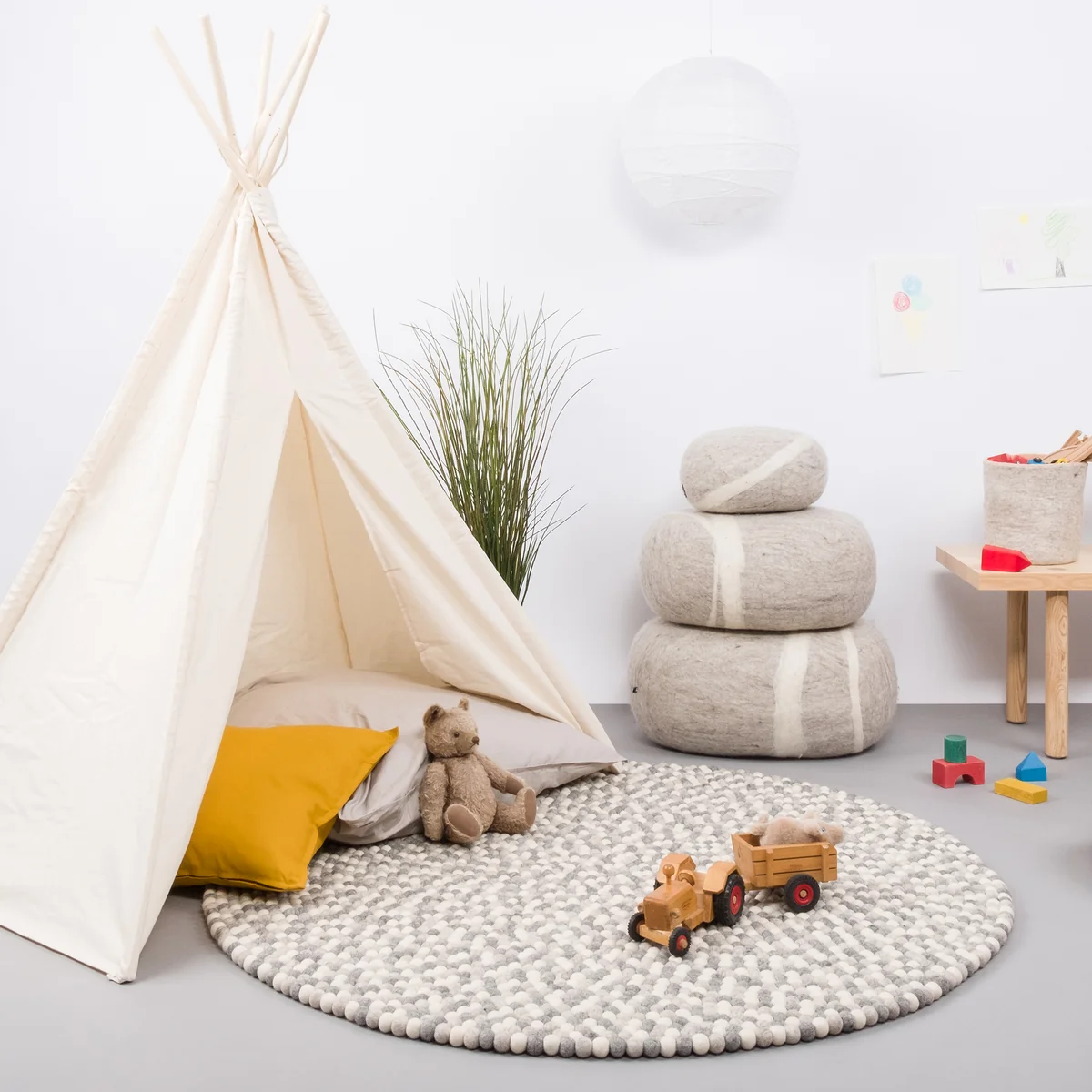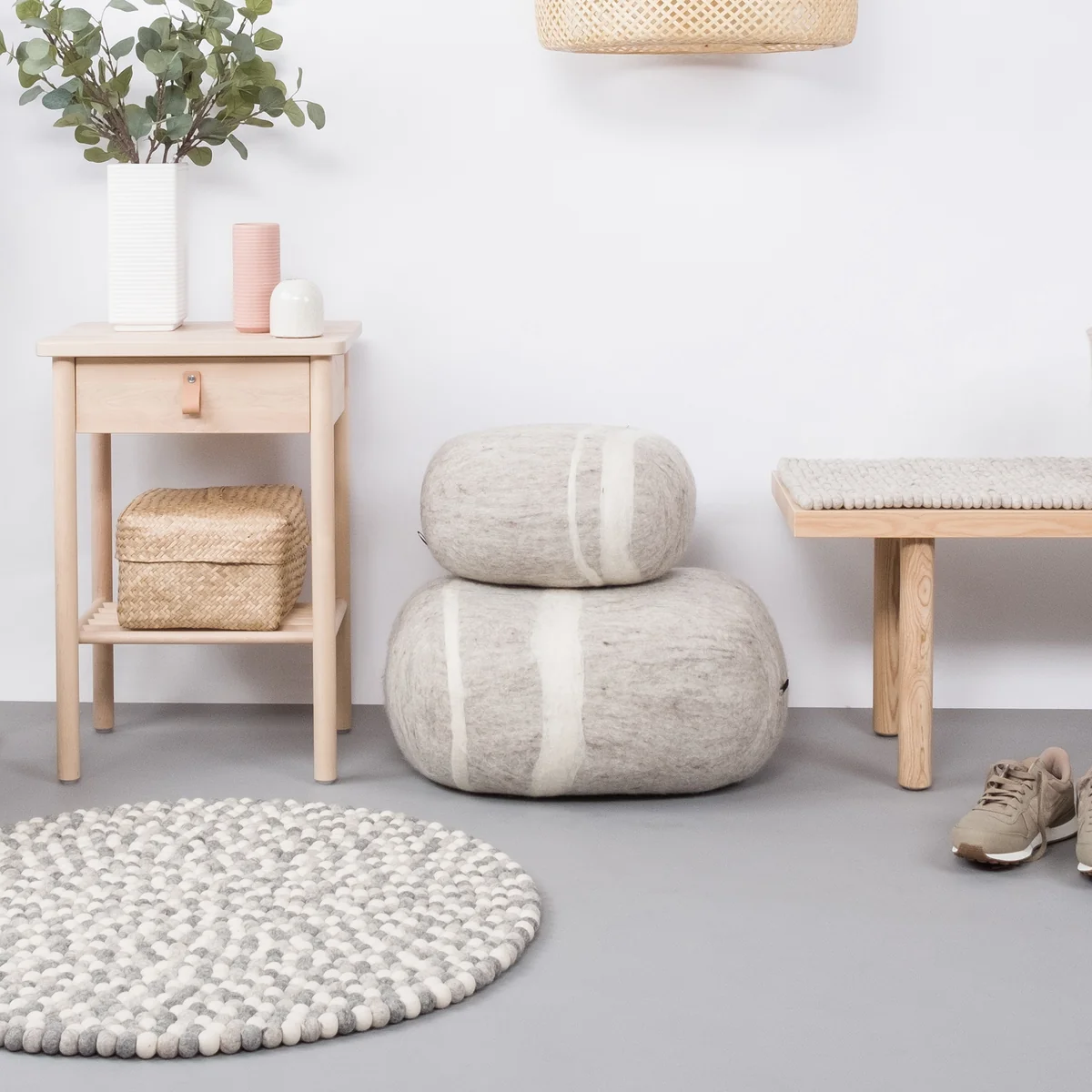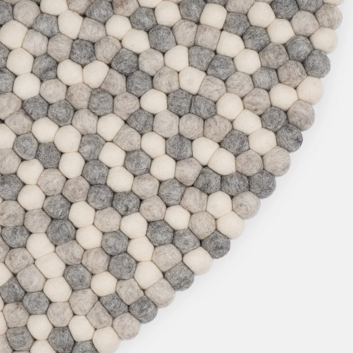 In verschiedenen Farben ist der runde Filzkugel-Teppich als runde, rechteckige und quadratische Version erhältlich.