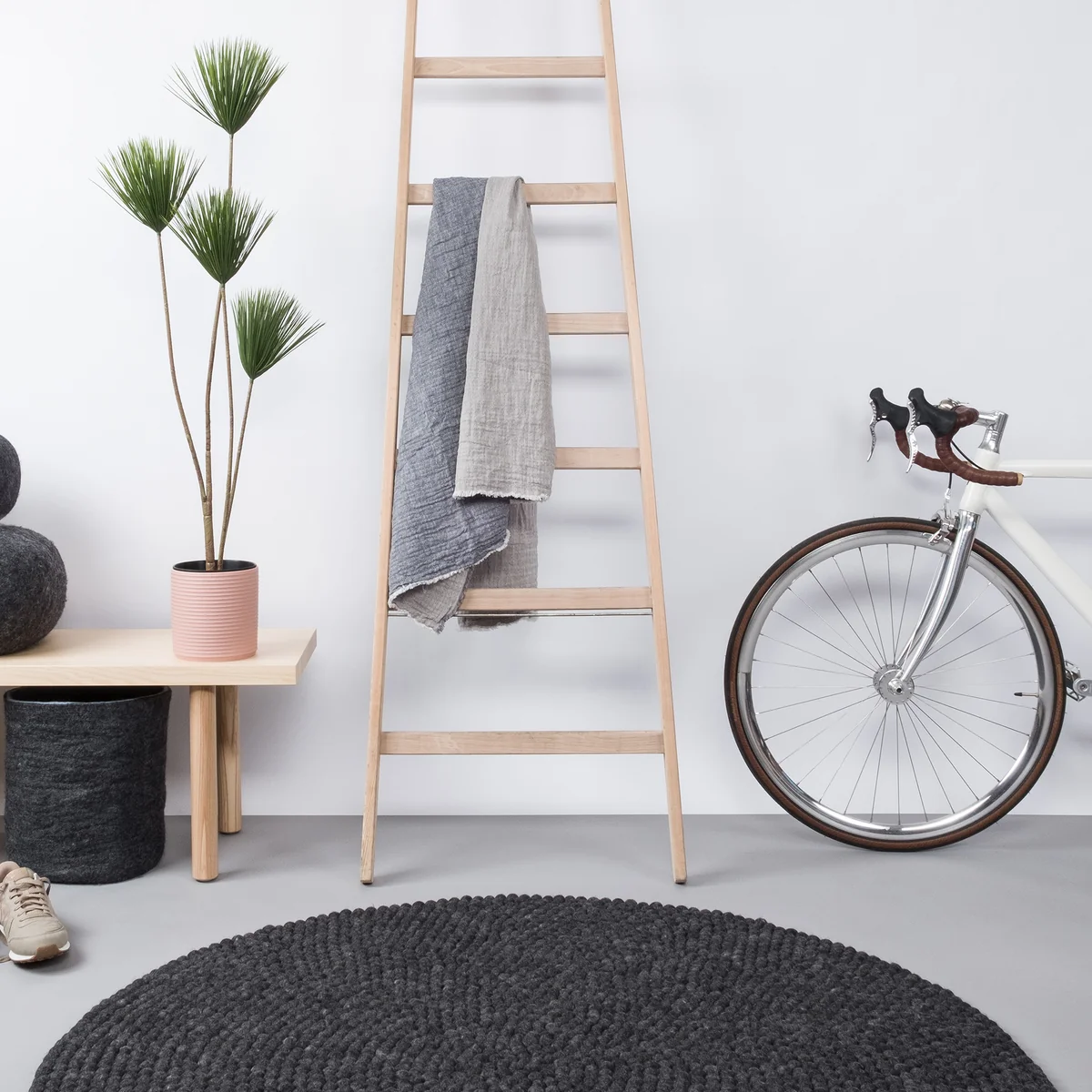 Der runde Mono Teppich von myfelt ist ein Filzteppich aus 100% neuseeländischer Schurwolle. Die einfarbigen Filzkugeln verleihen dem Teppich ein pures und leichtes Aussehen und veredeln jeden Raum auf dezente Weise.