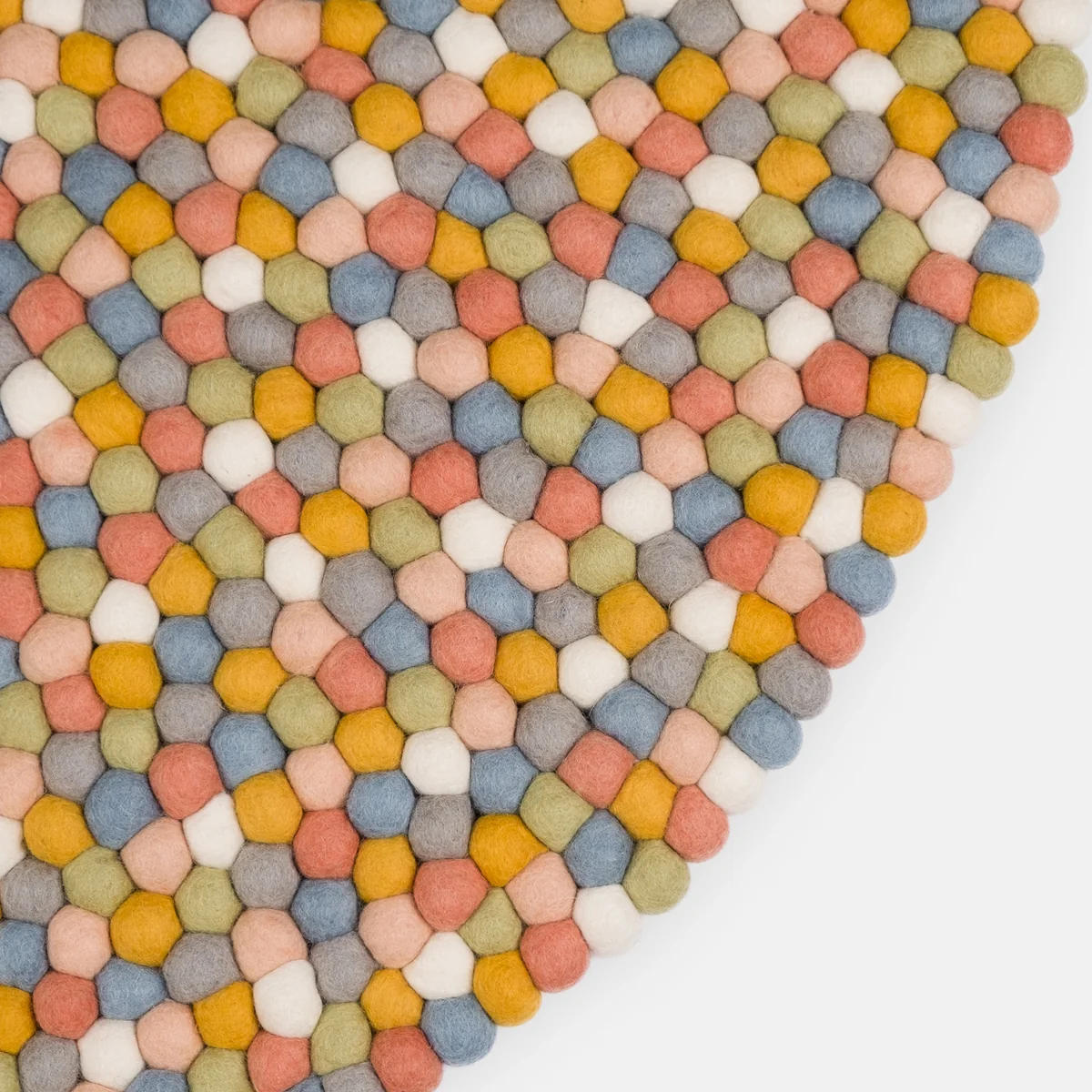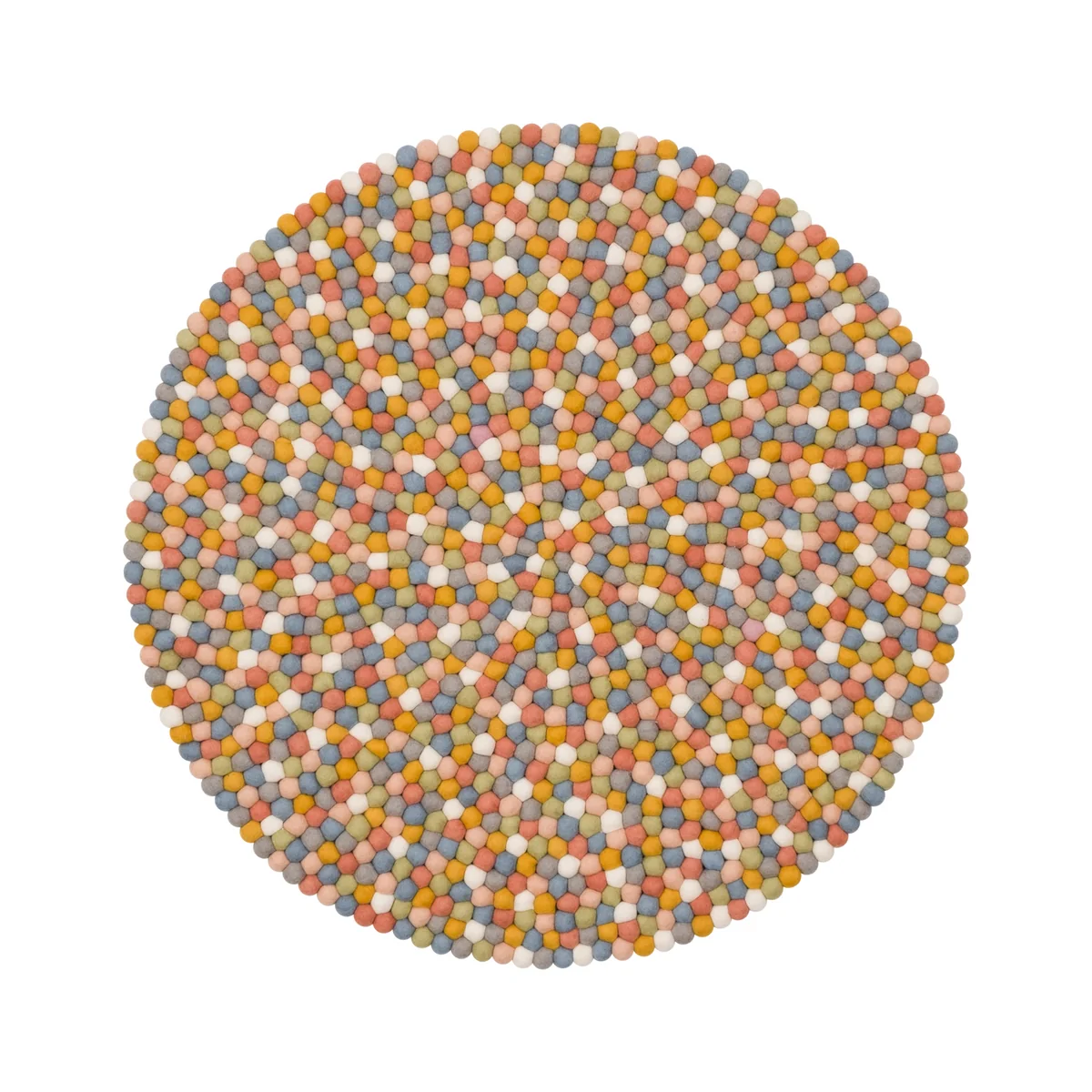 In verschiedenen Farben ist der runde Filzkugel-Teppich als runde, rechteckige und quadratische Version erhältlich.