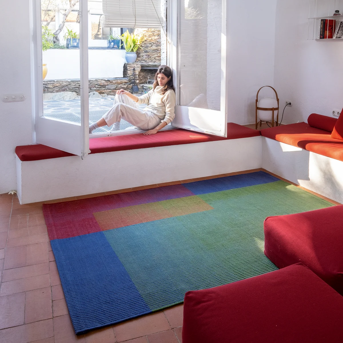 Der Haze Wollteppich von Begüm Cana Özgür für den spanischen Hersteller nanimarquina ist das Ergebnis des Reflexionsprozesses über die Bedeutung von Kontrast und Harmonie. Haze visualisiert das Zusammenspiel von Farben, welches beim Dunst in der Natur entsteht. Die Farben sind auf einzigartige Art und Weise synchron zueinander und stellen so ein ästhetisches Gleichgewicht dar.