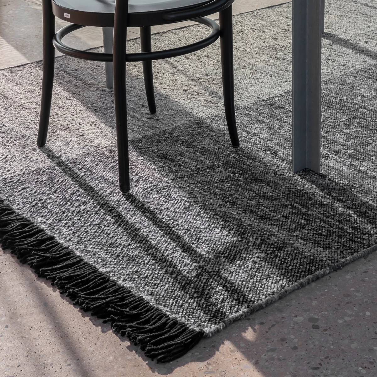 Das Ergebnis ist eine Kollektion mit unterschiedlichen Varianten des Re-Rugs, welche aus 50% Schurwolle und 50% wieder verwendbarer Wolle bestehen.