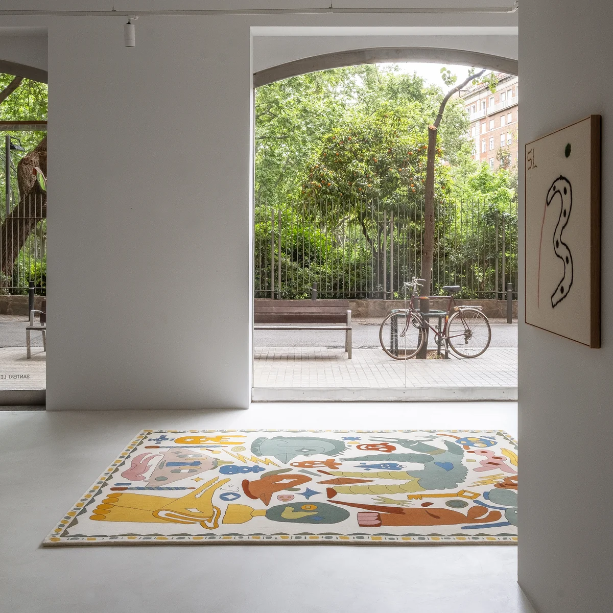 Der Troupe Teppich des Designers Jamie Hayon für den spanischen Hersteller nanimarquina erinnert mit seinem außergewöhnlichen Design an eine verrückte, humorvolle, fast schon traumhafte Party. Das imaginäre Universum des Designers wird in dem Teppich perfekt in Szene gesetzt. Troupe erzählt von Freunden, Kindern, Freigeistigkeit und Spontanität. Tiere in verschiedensten Größen und Ausführungen schweben auf der Oberfläche des Teppichs. Der Troupe Teppich wird handgetuftet. Mit seiner ausgewogenen und harmonischen Farbpalette, kann Troupe in jeglichen Räumen eingesetzt werden, um so für einen einzigartigen Blickfang zu sorgen.