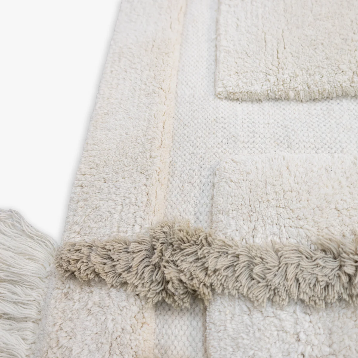 Der Ploff Teppich von Studio Zondag, gefertigt aus neuseeländischer Wolle, verkörpert Eleganz und Komfort in jedem Detail. Die Verwendung der hochwertigen neuseeländischen Wolle garantiert nicht nur eine außergewöhnliche Weichheit, sondern auch eine bemerkenswerte Strapazierfähigkeit. Die sorgfältige Handwerkskunst von Studio Zondag manifestiert sich in einem ansprechenden Design, das moderne Ästhetik mit zeitloser Schönheit vereint. Der Ploff Teppich ist nicht nur ein funktionales Element, sondern auch ein kunstvolles Statement, das jeden Raum aufwertet. Seine luxuriöse Textur und die warmen, erdigen Farbtöne schaffen eine gemütliche Atmosphäre, während die Qualität der neuseeländischen Wolle dafür sorgt, dass dieser Teppich nicht nur eine Bereicherung für das Auge, sondern auch für den Tastsinn ist.
