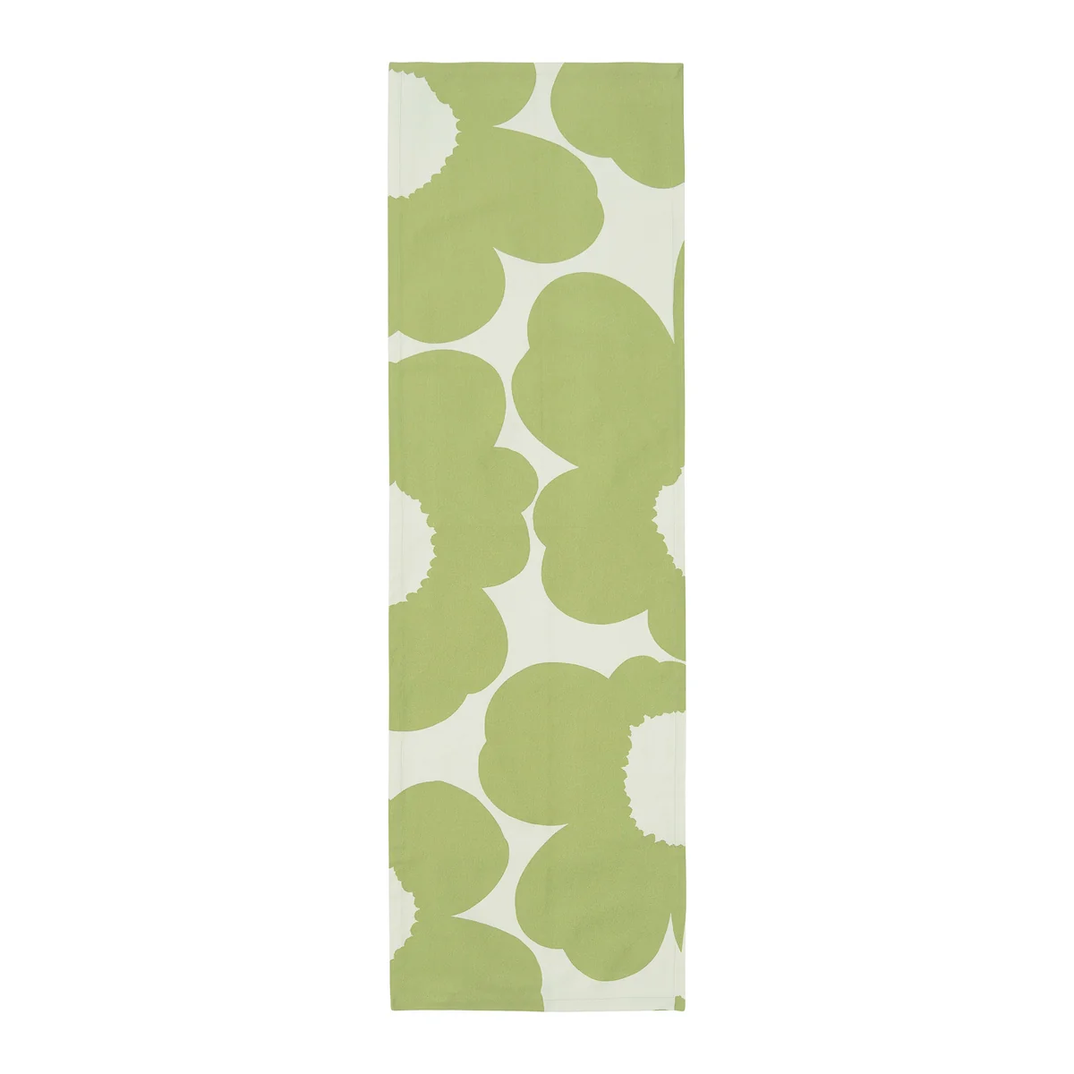 Ungebleichte Stoffe und recycelte Fasern verleihen jedem Tischläufer eine natürliche, lebendige Oberfläche. Kleine Farbabweichungen und Nuancen machen jedes Stück einzigartig. Das Unikko-Muster, entworfen von Maija Isola, steht bis heute für Kreativität und Mut zum Ausdruck und entstand zu einer Zeit, in der florale Motive bei Marimekko eine Seltenheit waren.