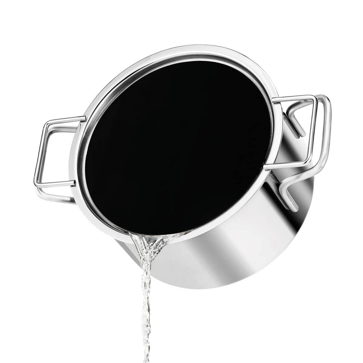 Jeder Deckel hat seine spezielle Funktion. Der Abgießdeckel ist beispielsweise perfekt beim Nudelkochen und damit besonders für das Stainless Steel Topfset mit Pastasieb geeignet. Ergänzend dazu sind klassische Deckel aus Glas oder Edelstahl erhältlich, die sich sowohl für die kleinen ( Ø 16 cm) oder größeren Töpfe und Pfannen (Ø 20 cm) eignen. Dabei begeistern die Edelstahldeckel mit nicht erhitzbaren Griffen, sodass beim Kochen und Zubereitung der Deckel ohne Kochhandschuh einfach auf- und abgesetzt werden kann.