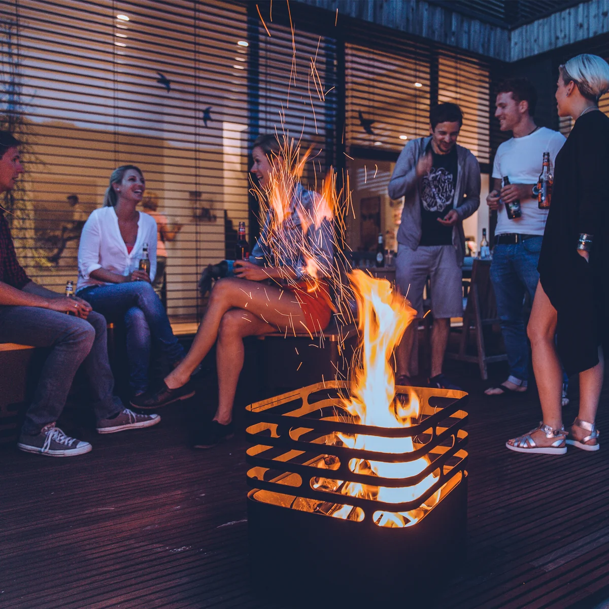 Der Cube von höfats ist viel mehr als einfach nur ein Feuerkorb. Denn er ist der wohl sicherste Feuerkorb der Welt, der auf Kommando ausgeht. Das Auflagebrett aus Bambus macht den Feuerkorb zu einem Hocker, einer Bank oder einem kleinen Beistelltisch.