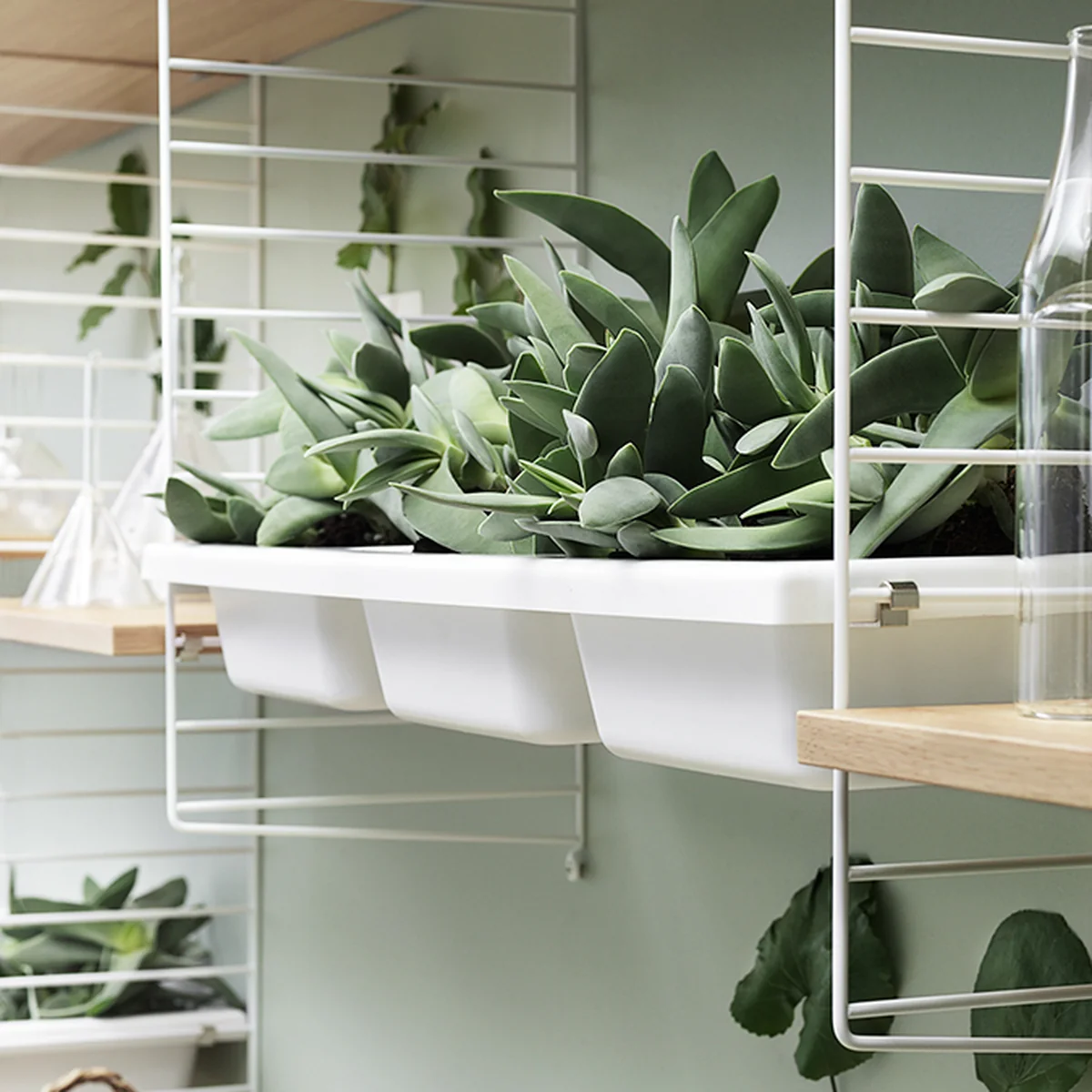 Mit dem Aufbewahrungseinsatz gibt es nun eine Möglichkeit, auch Kleinteile sicher und stilvoll im String Regal aufzubewahren: Mit seinen drei Fächern fällt nichts heraus, was im Regal seinen Platz finden soll. Ob Büromaterialien, Bastelbedarf, Schlüssel, Handys, Brillen oder andere Gegenstände - im Aufbewahrungseinsatz von String sind sie wunderbar aufgehoben.