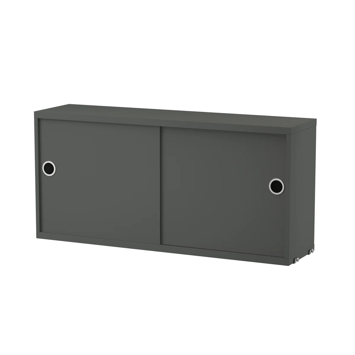 Das Schrankmodul mit Schiebetüren von String lässt das Regalsystem zum organisierten Schrank werden und Gegenstände, die nicht sofort sichtbar sein sollen, können hinter den Schiebetüren des Moduls dezent verschwinden. Schuhe, Spielzeug, Akten, Gläser, Bücher und vieles mehr, können in dem Schiebeschrank von String einfach und stilvoll vor den Blicke anderer versteckt werden.