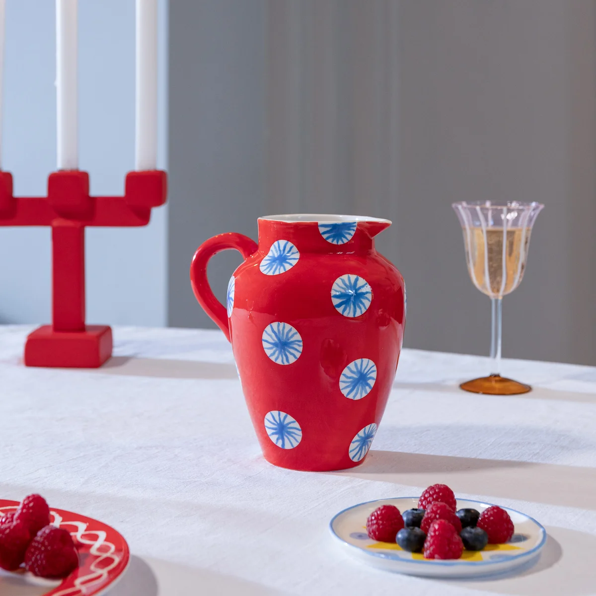 Der Jug Festivo ist Teil der lebendigen Festivo-Serie und bringt farbenfrohe Eleganz auf den gedeckten Tisch. Gefertigt aus hochwertigem Porzellan, zeigt der Krug handbemalte Muster mit Schleifenmotiven und geometrischen Elementen in harmonisch abgestimmter Farbpalette. Ob für Wasser, Saft oder als dekoratives Einzelstück – der Krug verbindet Funktionalität mit festlicher Ausstrahlung.