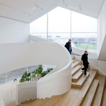 So erschließt die Architektur des VitraHaus dem Besucher einen Parcours der Überraschungen und erlaubt Blicke in die Weinberge des Tüllinger Hügels, über den Vitra Campus, in Richtung Basel und ins Elsass.