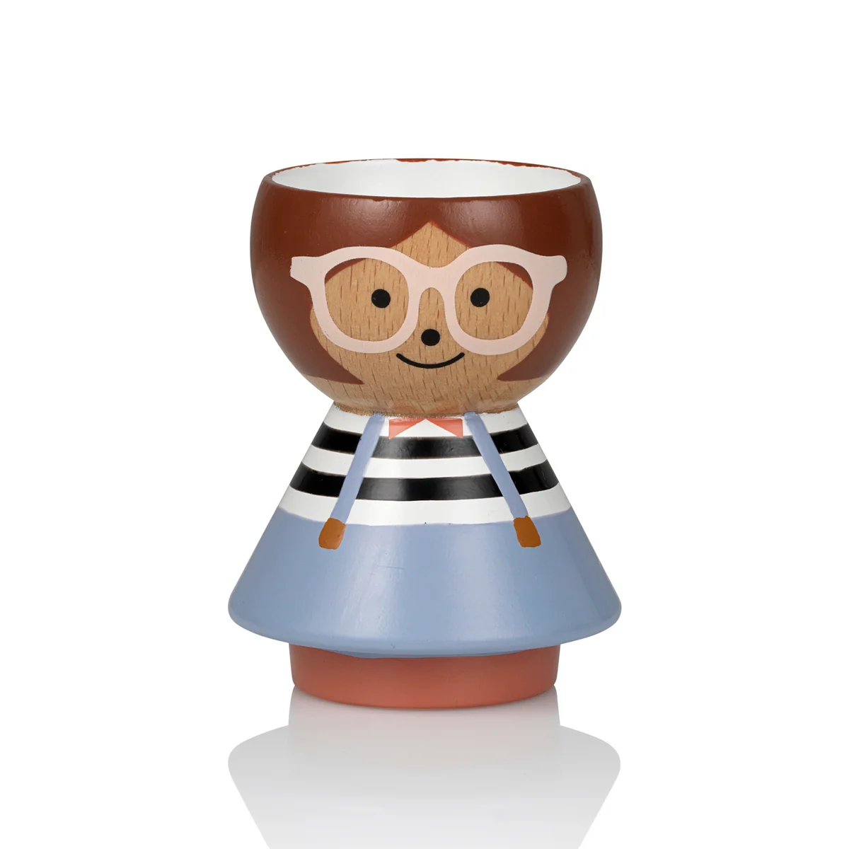 Die Bordfolk Eierbecher der Mädchen Serie von Lucie Kaas bestehen aus verschiedenen Eierbechern in Form eines kleinen Mädchens mit Kleidern in verschiedenen Farben und mit unterschiedlichen Mustern. Die Eierbecher sind außergewöhnliche Geschenkideen für verschiedene Anlässe.