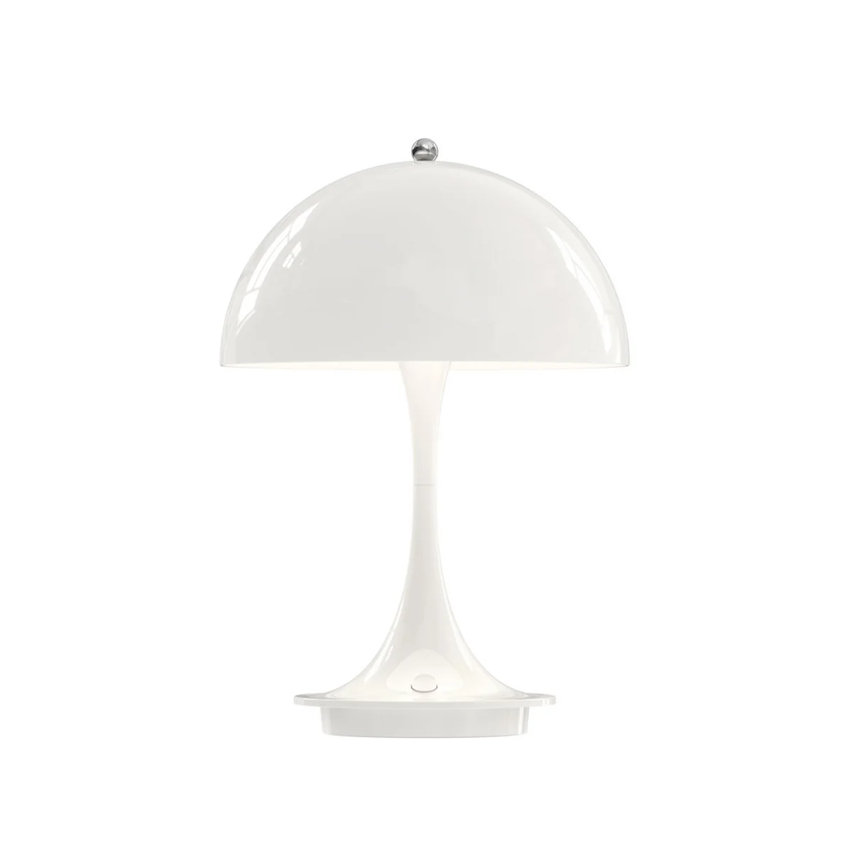 Die Panthella LED-Tischleuchte von Louis Poulsen ist die kleinste Ausführung der Panthella-Tischleuchten, die bereits 1971 von Verner Panton entworfen wurden. Kompakt und mobil ist die Akku-Tischleuchte flexibel einsetzbar und besonders praktisch. Dabei sorgen die Transparenz des Schirms und die Reflexion des nach unten gerichteten Lichtstrahls für sanftes und blendfreies Licht.